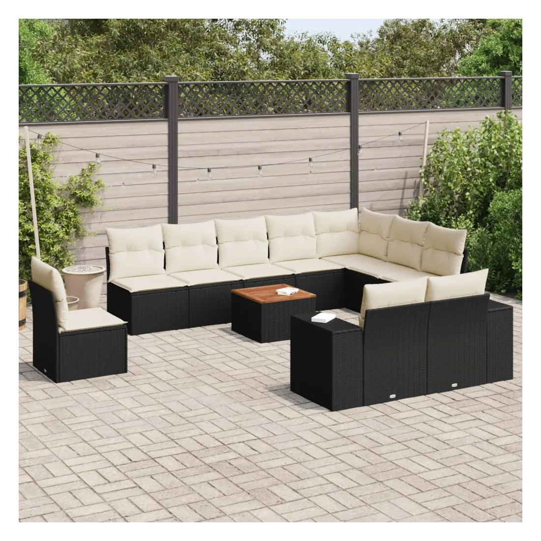 Cet ensemble de canapés de jardin est le complément parfait de votre arrière-cour, terrasse ou patio, offrant un espace confortable et accueillant pour discuter avec la famille et les amis ou simplement se détendre et profiter de l'extérieur. Matériau durable : la résine tressée, également connue sous le nom de poly rotin, est un matériau synthétique solide et nécessitant peu d'entretien qui ressemble au rotin naturel. Il est léger, facile à nettoyer et couramment utilisé pour les meubles d'extérieur en raison de sa durabilité et de ses propriétés de résistance aux intempéries.Dessus stable et facile à nettoyer : cette table de jardin a un dessus en bois d'acacia robuste, durable et facile à nettoyer avec un chiffon humide. Expérience d'assise confortable : ce mobilier d'extérieur, doté de coussins épais, offre une expérience d'assise confortable. Housse amovible et lavable : ces coussins de siège sont dotés de housses amovibles pour un lavage et un entretien faciles.Conception modulaire : cet ensemble de meubles d'extérieur a une conception modulaire, ce qui le rend complètement flexible et facile à déplacer, afin que vous puissiez créer un agencement de meubles d'extérieur personnalisé. Bon à savoir :Pour que vos meubles d'extérieur restent beaux, nous vous recommandons de les protéger avec une housse imperméable.