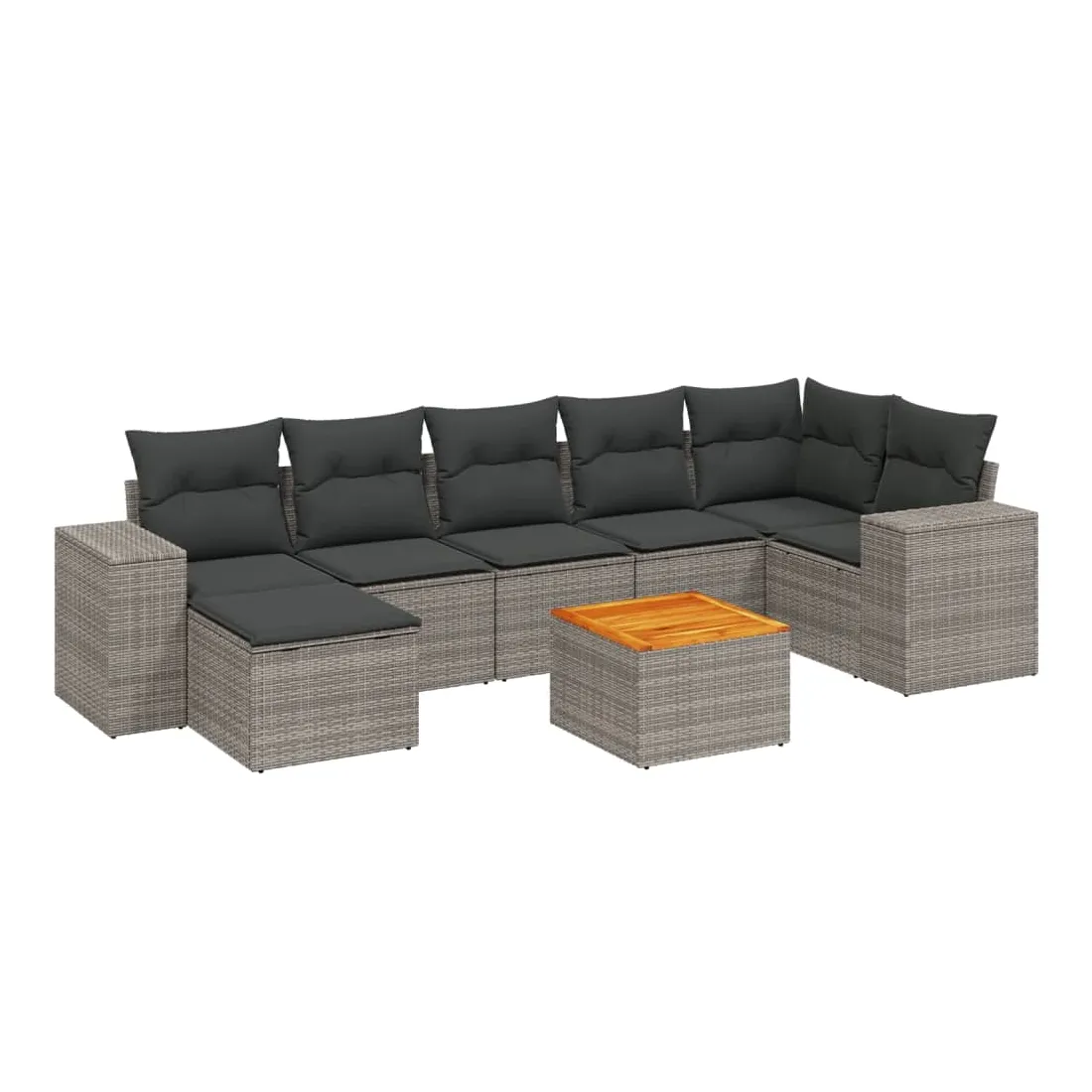 Cet ensemble de canapés de jardin est le complément parfait de votre arrière-cour, terrasse ou patio, offrant un espace confortable et accueillant pour discuter avec la famille et les amis ou simplement se détendre et profiter de l'extérieur. Matériau durable : la résine tressée, également connue sous le nom de poly rotin, est un matériau synthétique solide et nécessitant peu d'entretien qui ressemble au rotin naturel. Il est léger, facile à nettoyer et couramment utilisé pour les meubles d'extérieur en raison de sa durabilité et de ses propriétés de résistance aux intempéries.Dessus stable et facile à nettoyer : cette table de jardin a un dessus en bois d'acacia robuste, durable et facile à nettoyer avec un chiffon humide. Expérience d'assise confortable : ce mobilier d'extérieur, doté de coussins épais, offre une expérience d'assise confortable.Housse amovible et lavable : ces coussins de siège sont dotés de housses amovibles pour un lavage et un entretien faciles.Conception modulaire : cet ensemble de meubles d'extérieur a une conception modulaire, ce qui le rend complètement flexible et facile à déplacer, afin que vous puissiez créer un agencement de meubles d'extérieur personnalisé. Bon à savoir :Pour que vos meubles d'extérieur restent beaux, nous vous recommandons de les protéger avec une housse imperméable.