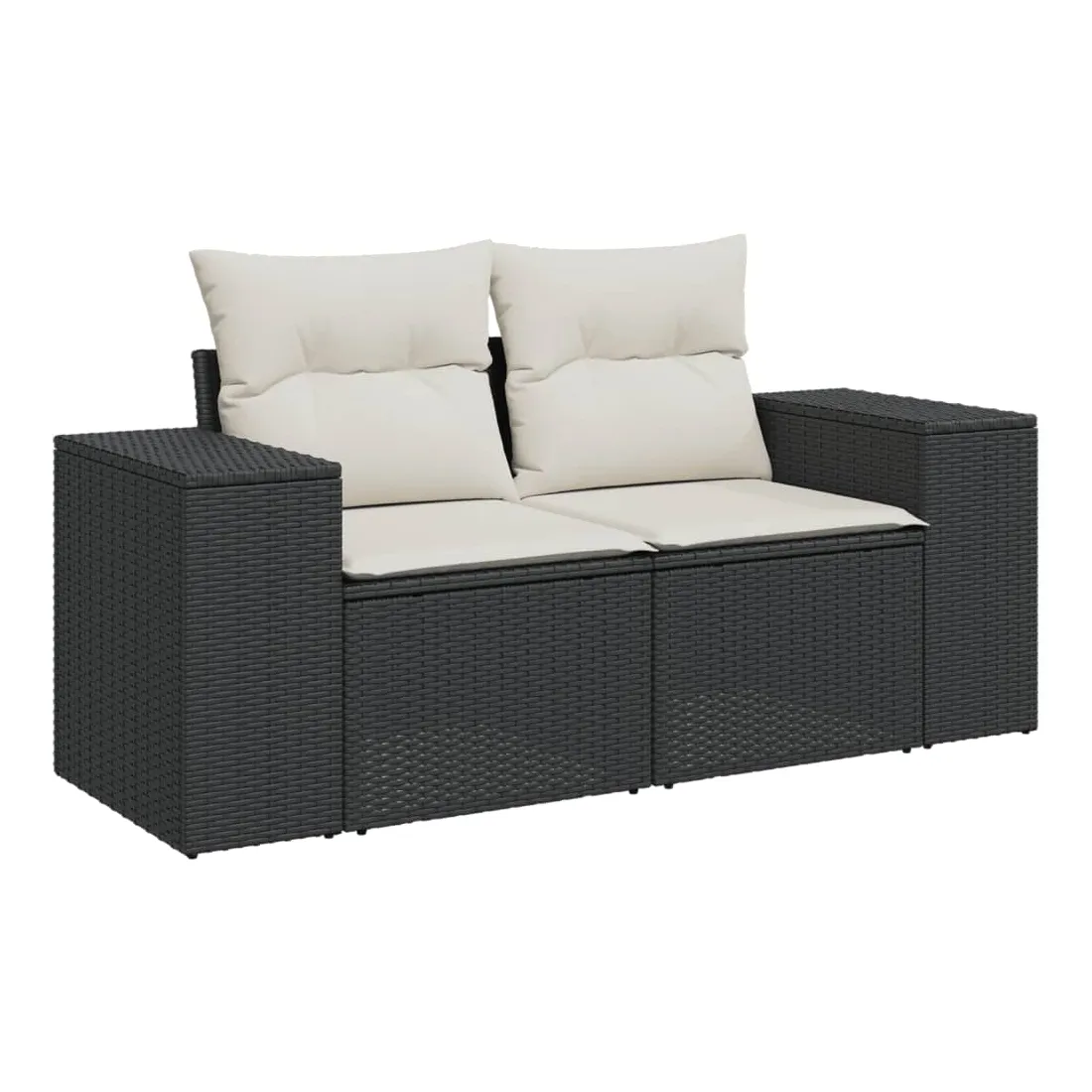 Salon de jardin 8 pcs avec coussins noir résine tressée
