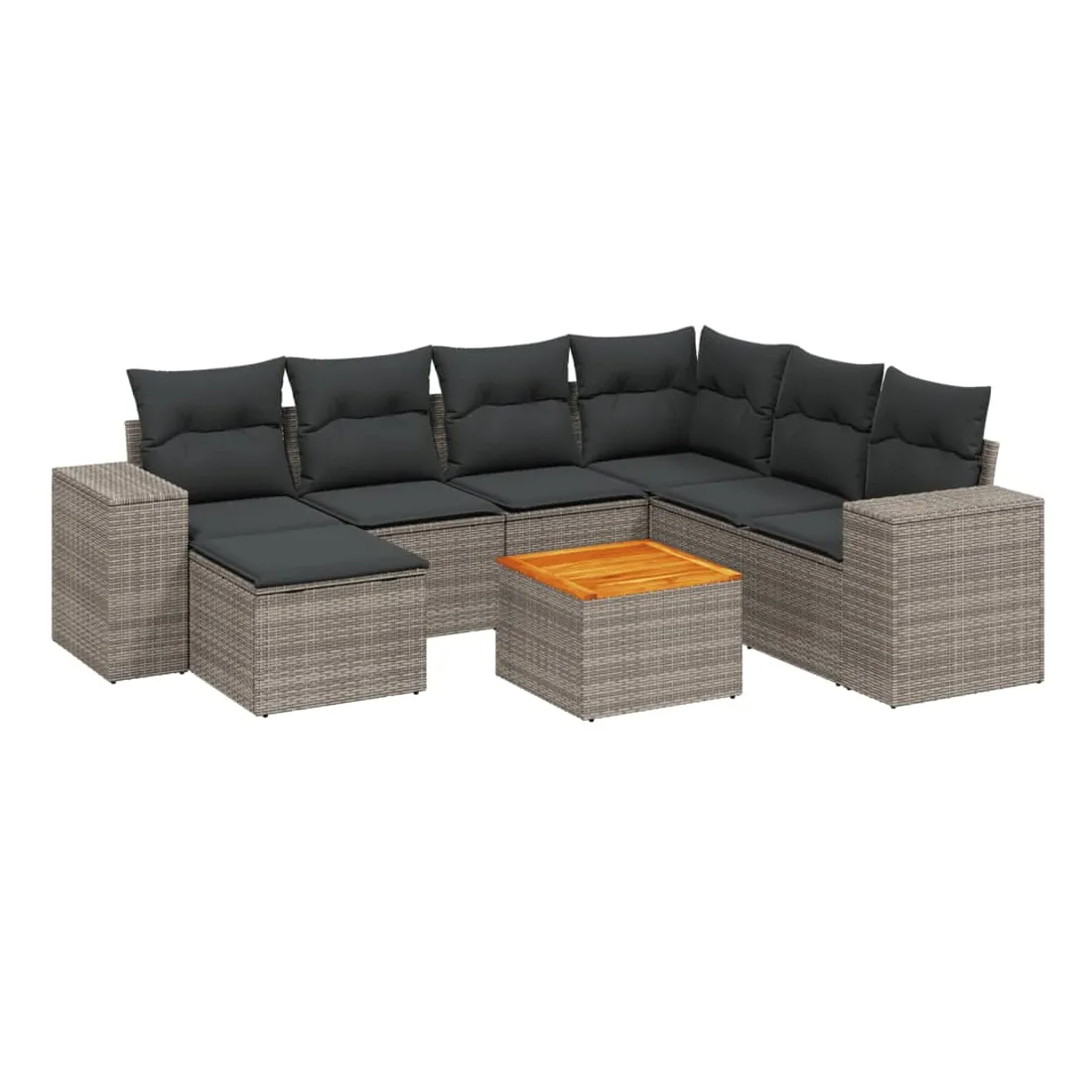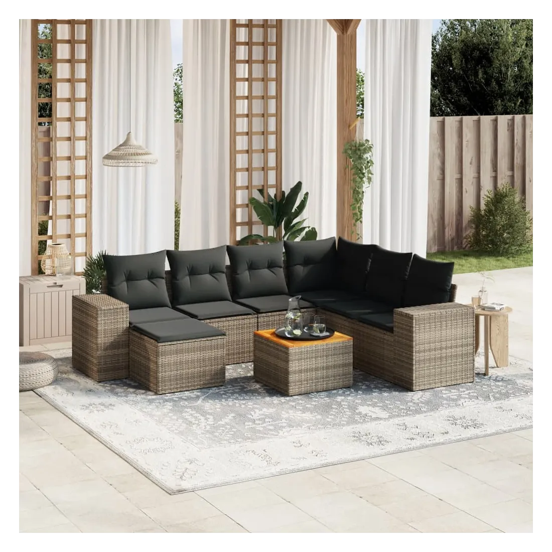 Salon de jardin 8 pcs avec coussins gris résine tressée