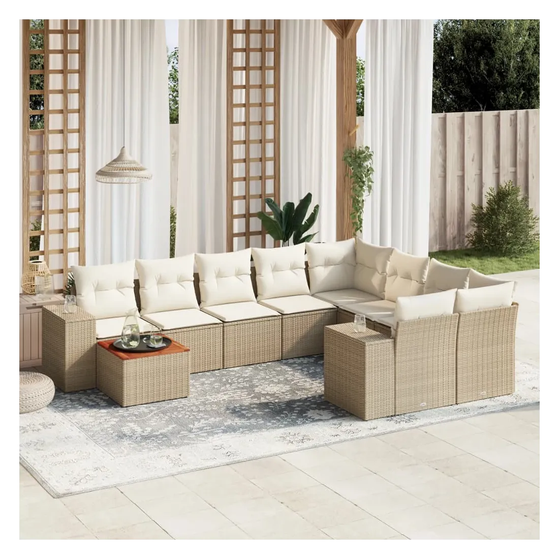 Salon de jardin avec coussins 10 pcs beige résine tressée