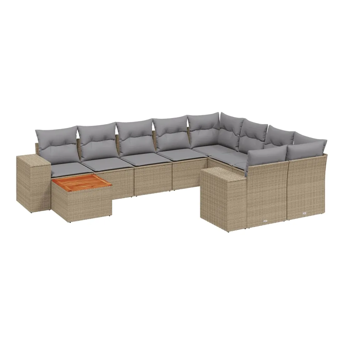 Cet ensemble de canapés de jardin est le complément parfait de votre arrière-cour, terrasse ou patio, offrant un espace confortable et accueillant pour discuter avec la famille et les amis ou simplement se détendre et profiter de l'extérieur. Matériau durable : la résine tressée, également connue sous le nom de poly rotin, est un matériau synthétique solide et nécessitant peu d'entretien qui ressemble au rotin naturel. Il est léger, facile à nettoyer et couramment utilisé pour les meubles d'extérieur en raison de sa durabilité et de ses propriétés de résistance aux intempéries.Dessus stable et facile à nettoyer : cette table de jardin a un dessus en bois d'acacia robuste, durable et facile à nettoyer avec un chiffon humide. Expérience d'assise confortable : ce mobilier d'extérieur, doté de coussins épais, offre une expérience d'assise confortable.Housse amovible et lavable : ces coussins de siège sont dotés de housses amovibles pour un lavage et un entretien faciles.Conception modulaire : cet ensemble de meubles d'extérieur a une conception modulaire, ce qui le rend complètement flexible et facile à déplacer, afin que vous puissiez créer un agencement de meubles d'extérieur personnalisé. Bon à savoir :Pour que vos meubles d'extérieur restent beaux, nous vous recommandons de les protéger avec une housse imperméable.