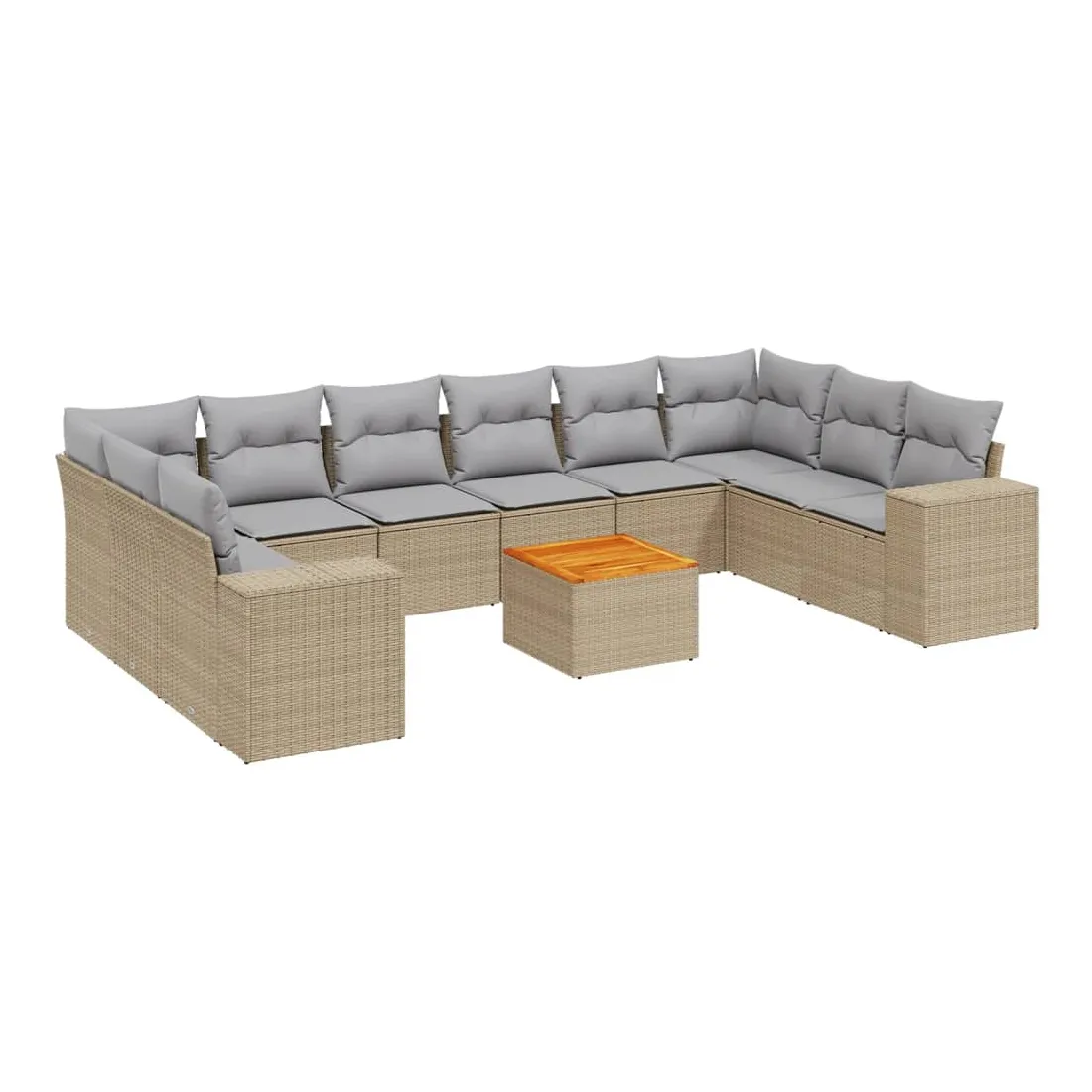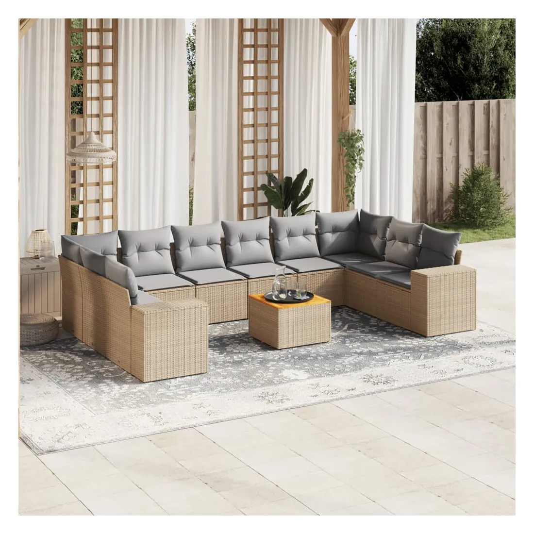 Salon de jardin 11 pcs avec coussins beige résine tressée