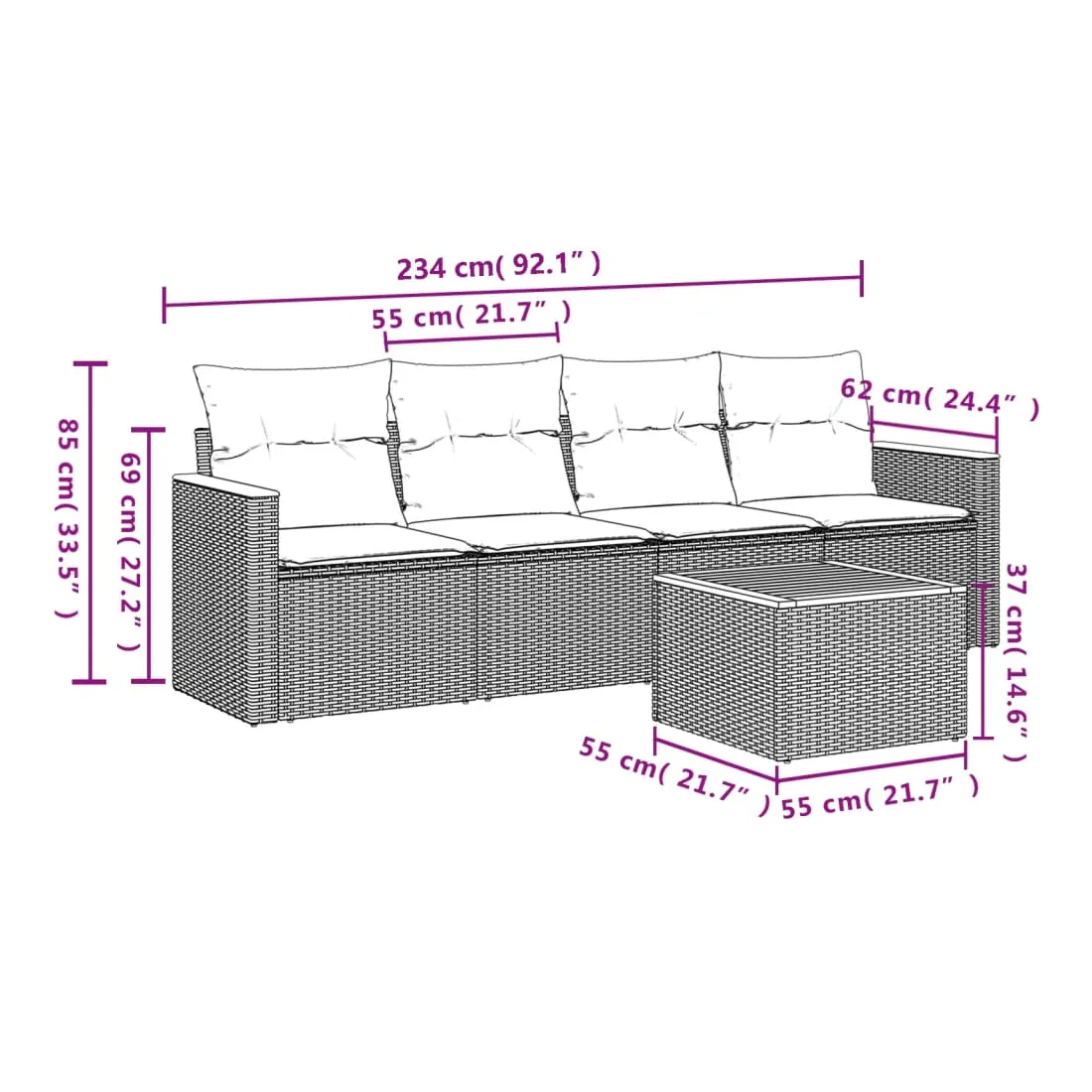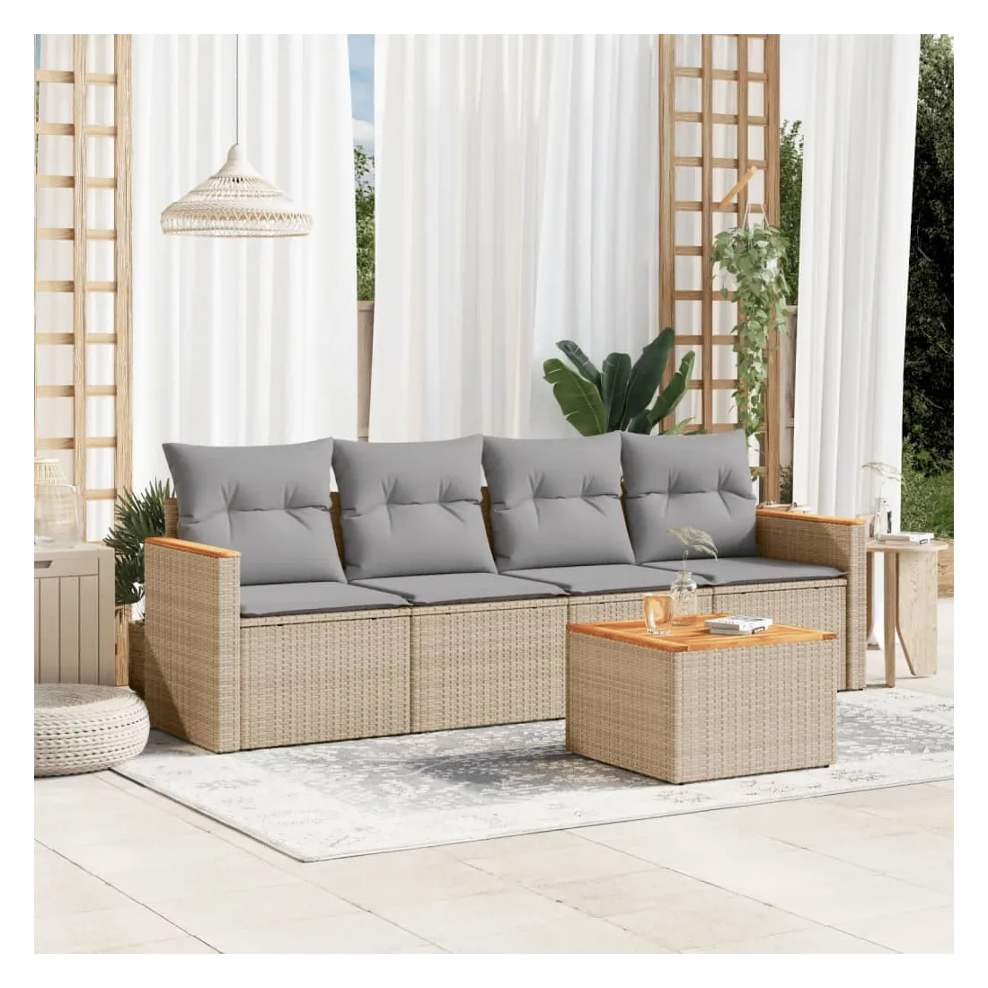 Cet ensemble de canapés de jardin est le complément parfait de votre arrière-cour, terrasse ou patio, offrant un espace confortable et accueillant pour discuter avec la famille et les amis ou simplement se détendre et profiter de l'extérieur. Matériau durable : la résine tressée, également connue sous le nom de poly rotin, est un matériau synthétique solide et nécessitant peu d'entretien qui ressemble au rotin naturel. Il est léger, facile à nettoyer et couramment utilisé pour les meubles d'extérieur en raison de sa durabilité et de ses propriétés de résistance aux intempéries.Dessus stable et facile à nettoyer : cette table de jardin a un dessus en bois d'acacia robuste, durable et facile à nettoyer avec un chiffon humide.Housse amovible et lavable : ces coussins de siège sont dotés de housses amovibles pour un lavage et un entretien faciles.Cadre robuste et stable : le cadre en acier enduit de poudre assure la solidité et la stabilité du meuble de jardin pour une utilisation quotidienne à l'extérieur.Conception modulaire : cet ensemble de meubles d'extérieur a une conception modulaire, ce qui le rend complètement flexible et facile à déplacer, afin que vous puissiez créer un agencement de meubles d'extérieur personnalisé. Bon à savoir :Pour que vos meubles d'extérieur restent beaux, nous vous recommandons de les protéger avec une housse imperméable.
