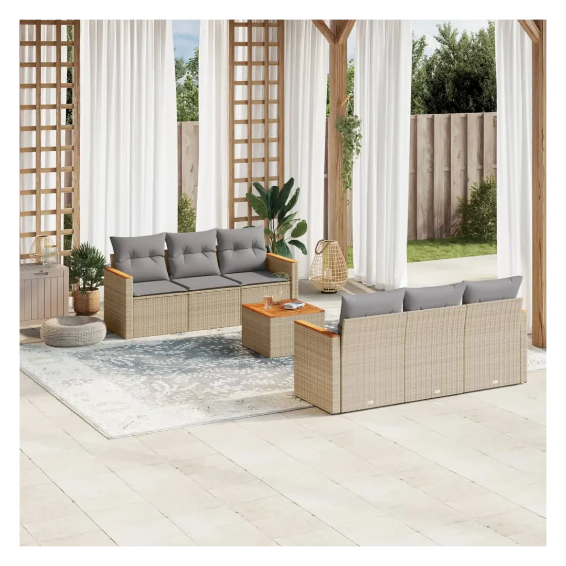 Cet ensemble de canapés de jardin est le complément parfait de votre arrière-cour, terrasse ou patio, offrant un espace confortable et accueillant pour discuter avec la famille et les amis ou simplement se détendre et profiter de l'extérieur. Matériau durable : la résine tressée, également connue sous le nom de poly rotin, est un matériau synthétique solide et nécessitant peu d'entretien qui ressemble au rotin naturel. Il est léger, facile à nettoyer et couramment utilisé pour les meubles d'extérieur en raison de sa durabilité et de ses propriétés de résistance aux intempéries.Dessus stable et facile à nettoyer : cette table de jardin a un dessus en bois d'acacia robuste, durable et facile à nettoyer avec un chiffon humide.Housse amovible et lavable : ces coussins de siège sont dotés de housses amovibles pour un lavage et un entretien faciles.Cadre robuste et stable : le cadre en acier enduit de poudre assure la solidité et la stabilité du meuble de jardin pour une utilisation quotidienne à l'extérieur.Conception modulaire : cet ensemble de meubles d'extérieur a une conception modulaire, ce qui le rend complètement flexible et facile à déplacer, afin que vous puissiez créer un agencement de meubles d'extérieur personnalisé. Bon à savoir :Pour que vos meubles d'extérieur restent beaux, nous vous recommandons de les protéger avec une housse imperméable.