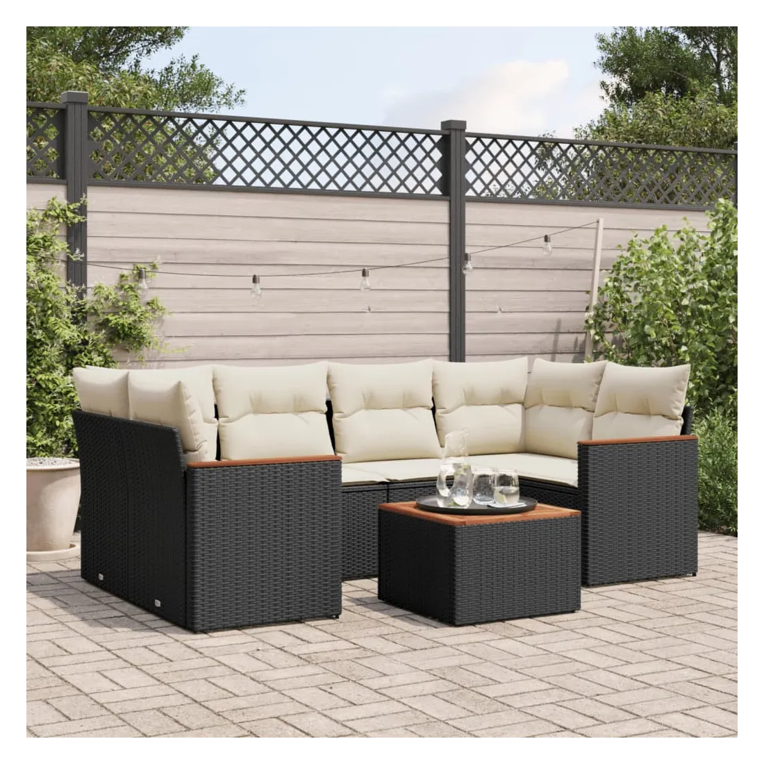 Cet ensemble de canapés de jardin est le complément parfait de votre arrière-cour, terrasse ou patio, offrant un espace confortable et accueillant pour discuter avec la famille et les amis ou simplement se détendre et profiter de l'extérieur. Matériau durable : la résine tressée, également connue sous le nom de poly rotin, est un matériau synthétique solide et nécessitant peu d'entretien qui ressemble au rotin naturel. Il est léger, facile à nettoyer et couramment utilisé pour les meubles d'extérieur en raison de sa durabilité et de ses propriétés de résistance aux intempéries.Dessus stable et facile à nettoyer : cette table de jardin a un dessus en bois d'acacia robuste, durable et facile à nettoyer avec un chiffon humide.Housse amovible et lavable : ces coussins de siège sont dotés de housses amovibles pour un lavage et un entretien faciles.Cadre robuste et stable : le cadre en acier enduit de poudre assure la solidité et la stabilité du meuble de jardin pour une utilisation quotidienne à l'extérieur.Conception modulaire : cet ensemble de meubles d'extérieur a une conception modulaire, ce qui le rend complètement flexible et facile à déplacer, afin que vous puissiez créer un agencement de meubles d'extérieur personnalisé. Bon à savoir :Pour que vos meubles d'extérieur restent beaux, nous vous recommandons de les protéger avec une housse imperméable.