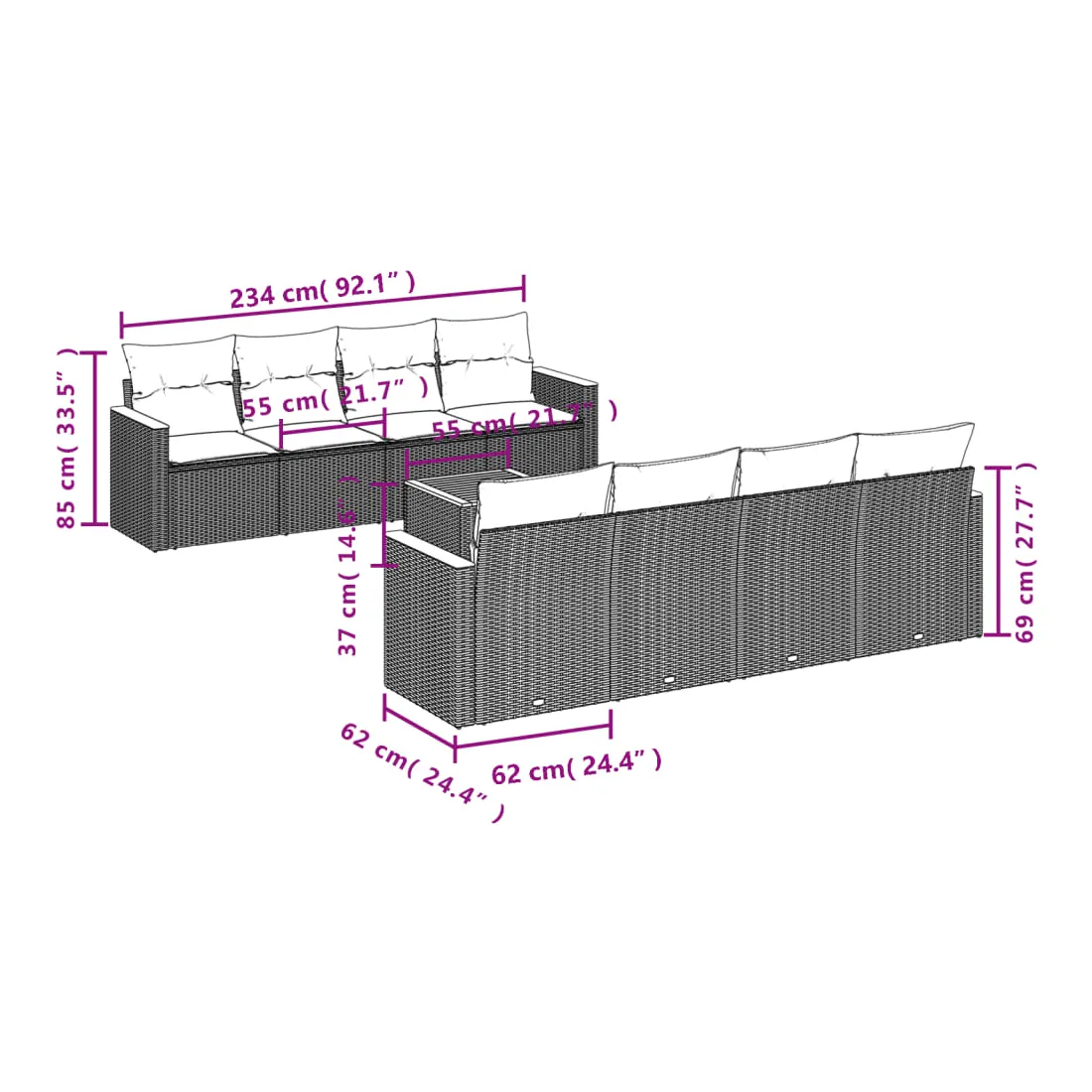 Cet ensemble de canapés de jardin est le complément parfait de votre arrière-cour, terrasse ou patio, offrant un espace confortable et accueillant pour discuter avec la famille et les amis ou simplement se détendre et profiter de l'extérieur. Matériau durable : la résine tressée, également connue sous le nom de poly rotin, est un matériau synthétique solide et nécessitant peu d'entretien qui ressemble au rotin naturel. Il est léger, facile à nettoyer et couramment utilisé pour les meubles d'extérieur en raison de sa durabilité et de ses propriétés de résistance aux intempéries.Dessus stable et facile à nettoyer : cette table de jardin a un dessus en bois d'acacia robuste, durable et facile à nettoyer avec un chiffon humide.Housse amovible et lavable : ces coussins de siège sont dotés de housses amovibles pour un lavage et un entretien faciles.Cadre robuste et stable : le cadre en acier enduit de poudre assure la solidité et la stabilité du meuble de jardin pour une utilisation quotidienne à l'extérieur.Conception modulaire : cet ensemble de meubles d'extérieur a une conception modulaire, ce qui le rend complètement flexible et facile à déplacer, afin que vous puissiez créer un agencement de meubles d'extérieur personnalisé. Bon à savoir :Pour que vos meubles d'extérieur restent beaux, nous vous recommandons de les protéger avec une housse imperméable.