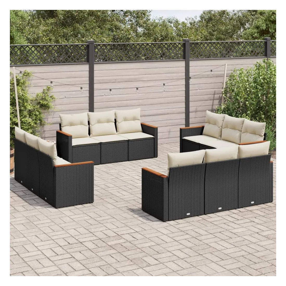 Cet ensemble de canapés de jardin est le complément parfait de votre arrière-cour, terrasse ou patio, offrant un espace confortable et accueillant pour discuter avec la famille et les amis ou simplement se détendre et profiter de l'extérieur. Matériau durable : la résine tressée, également connue sous le nom de poly rotin, est un matériau synthétique solide et nécessitant peu d'entretien qui ressemble au rotin naturel. Il est léger, facile à nettoyer et couramment utilisé pour les meubles d'extérieur en raison de sa durabilité et de ses propriétés de résistance aux intempéries.Housse amovible et lavable : ces coussins de siège sont dotés de housses amovibles pour un lavage et un entretien faciles.Cadre robuste et stable : le cadre en acier enduit de poudre assure la solidité et la stabilité du meuble de jardin pour une utilisation quotidienne à l'extérieur.Conception modulaire : cet ensemble de meubles d'extérieur a une conception modulaire, ce qui le rend complètement flexible et facile à déplacer, afin que vous puissiez créer un agencement de meubles d'extérieur personnalisé. Bon à savoir :Pour que vos meubles d'extérieur restent beaux, nous vous recommandons de les protéger avec une housse imperméable.
