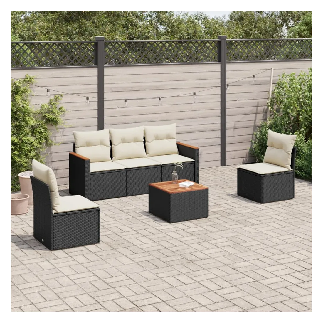 Cet ensemble de canapés de jardin est le complément parfait de votre arrière-cour, terrasse ou patio, offrant un espace confortable et accueillant pour discuter avec la famille et les amis ou simplement se détendre et profiter de l'extérieur. Matériau durable : la résine tressée, également connue sous le nom de poly rotin, est un matériau synthétique solide et nécessitant peu d'entretien qui ressemble au rotin naturel. Il est léger, facile à nettoyer et couramment utilisé pour les meubles d'extérieur en raison de sa durabilité et de ses propriétés de résistance aux intempéries.Dessus stable et facile à nettoyer : cette table de jardin a un dessus en bois d'acacia robuste, durable et facile à nettoyer avec un chiffon humide.Housse amovible et lavable : ces coussins de siège sont dotés de housses amovibles pour un lavage et un entretien faciles.Cadre robuste et stable : le cadre en acier enduit de poudre assure la solidité et la stabilité du meuble de jardin pour une utilisation quotidienne à l'extérieur.Conception modulaire : cet ensemble de meubles d'extérieur a une conception modulaire, ce qui le rend complètement flexible et facile à déplacer, afin que vous puissiez créer un agencement de meubles d'extérieur personnalisé. Bon à savoir :Pour que vos meubles d'extérieur restent beaux, nous vous recommandons de les protéger avec une housse imperméable.