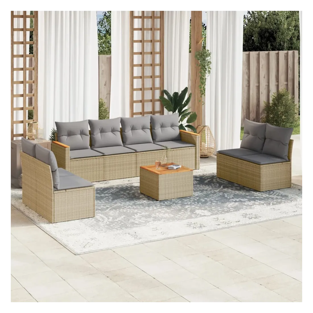Cet ensemble de canapés de jardin est le complément parfait de votre arrière-cour, terrasse ou patio, offrant un espace confortable et accueillant pour discuter avec la famille et les amis ou simplement se détendre et profiter de l'extérieur. Matériau durable : la résine tressée, également connue sous le nom de poly rotin, est un matériau synthétique solide et nécessitant peu d'entretien qui ressemble au rotin naturel. Il est léger, facile à nettoyer et couramment utilisé pour les meubles d'extérieur en raison de sa durabilité et de ses propriétés de résistance aux intempéries.Dessus stable et facile à nettoyer : cette table de jardin a un dessus en bois d'acacia robuste, durable et facile à nettoyer avec un chiffon humide.Housse amovible et lavable : ces coussins de siège sont dotés de housses amovibles pour un lavage et un entretien faciles.Cadre robuste et stable : le cadre en acier enduit de poudre assure la solidité et la stabilité du meuble de jardin pour une utilisation quotidienne à l'extérieur.Conception modulaire : cet ensemble de meubles d'extérieur a une conception modulaire, ce qui le rend complètement flexible et facile à déplacer, afin que vous puissiez créer un agencement de meubles d'extérieur personnalisé. Bon à savoir :Pour que vos meubles d'extérieur restent beaux, nous vous recommandons de les protéger avec une housse imperméable.