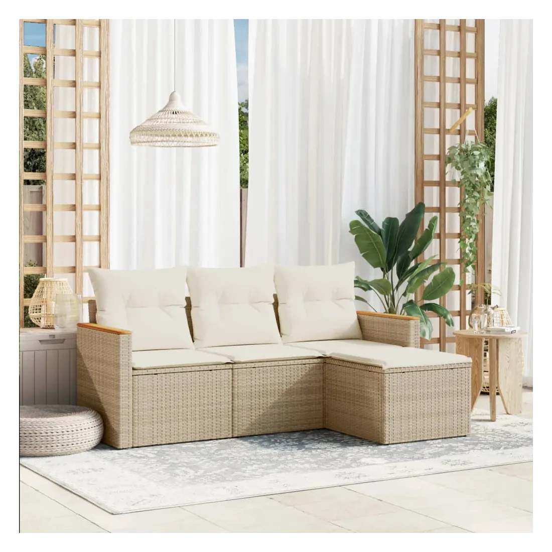 Cet ensemble de canapés de jardin est le complément parfait de votre arrière-cour, terrasse ou patio, offrant un espace confortable et accueillant pour discuter avec la famille et les amis ou simplement se détendre et profiter de l'extérieur. Matériau durable : la résine tressée, également connue sous le nom de poly rotin, est un matériau synthétique solide et nécessitant peu d'entretien qui ressemble au rotin naturel. Il est léger, facile à nettoyer et couramment utilisé pour les meubles d'extérieur en raison de sa durabilité et de ses propriétés de résistance aux intempéries.Housse amovible et lavable : ces coussins de siège sont dotés de housses amovibles pour un lavage et un entretien faciles.Cadre robuste et stable : le cadre en acier enduit de poudre assure la solidité et la stabilité du meuble de jardin pour une utilisation quotidienne à l'extérieur.Conception modulaire : cet ensemble de meubles d'extérieur a une conception modulaire, ce qui le rend complètement flexible et facile à déplacer, afin que vous puissiez créer un agencement de meubles d'extérieur personnalisé. Bon à savoir :Pour que vos meubles d'extérieur restent beaux, nous vous recommandons de les protéger avec une housse imperméable.