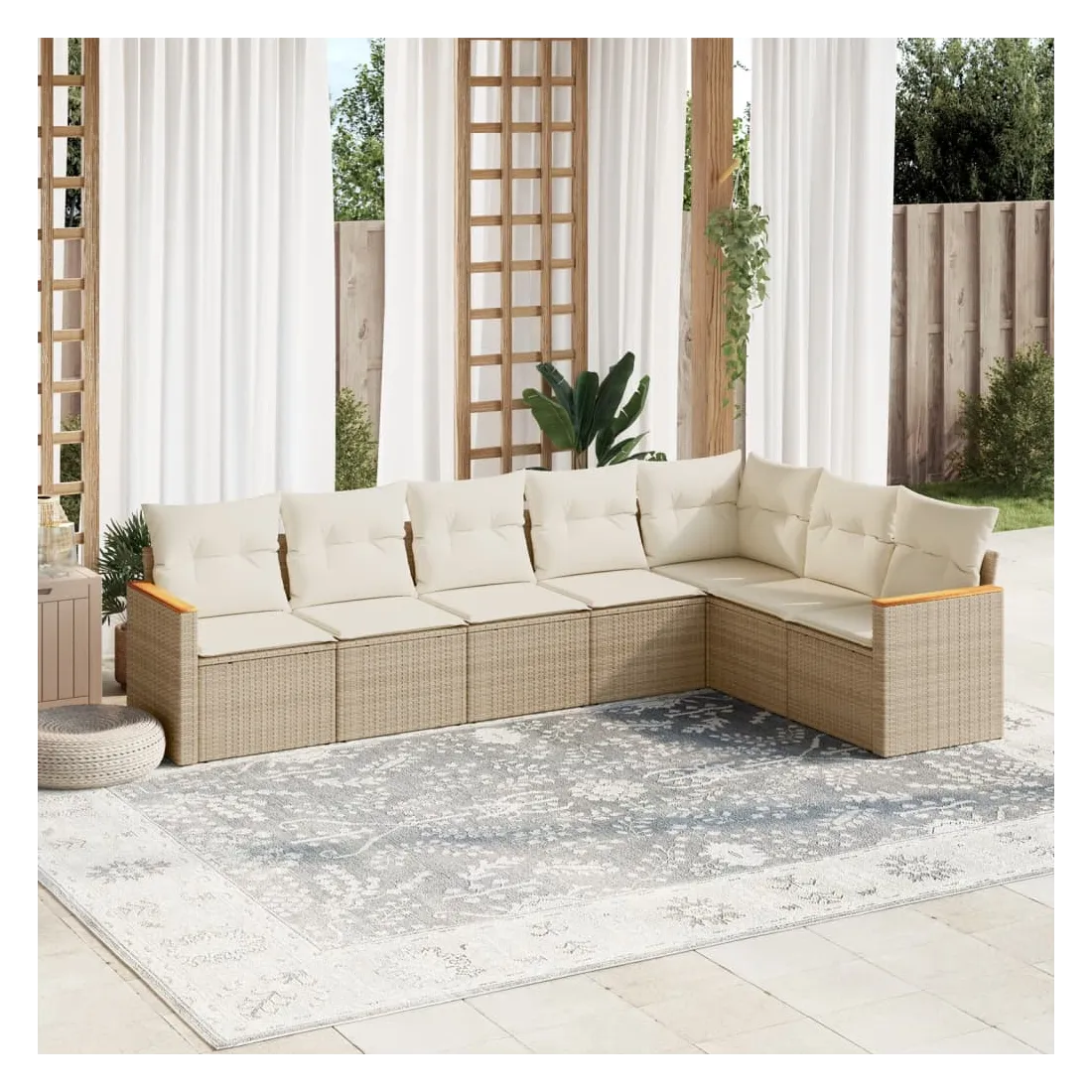 Cet ensemble de canapés de jardin est le complément parfait de votre arrière-cour, terrasse ou patio, offrant un espace confortable et accueillant pour discuter avec la famille et les amis ou simplement se détendre et profiter de l'extérieur. Matériau durable : la résine tressée, également connue sous le nom de poly rotin, est un matériau synthétique solide et nécessitant peu d'entretien qui ressemble au rotin naturel. Il est léger, facile à nettoyer et couramment utilisé pour les meubles d'extérieur en raison de sa durabilité et de ses propriétés de résistance aux intempéries.Housse amovible et lavable : ces coussins de siège sont dotés de housses amovibles pour un lavage et un entretien faciles.Cadre robuste et stable : le cadre en acier enduit de poudre assure la solidité et la stabilité du meuble de jardin pour une utilisation quotidienne à l'extérieur.Conception modulaire : cet ensemble de meubles d'extérieur a une conception modulaire, ce qui le rend complètement flexible et facile à déplacer, afin que vous puissiez créer un agencement de meubles d'extérieur personnalisé. Bon à savoir :Pour que vos meubles d'extérieur restent beaux, nous vous recommandons de les protéger avec une housse imperméable.