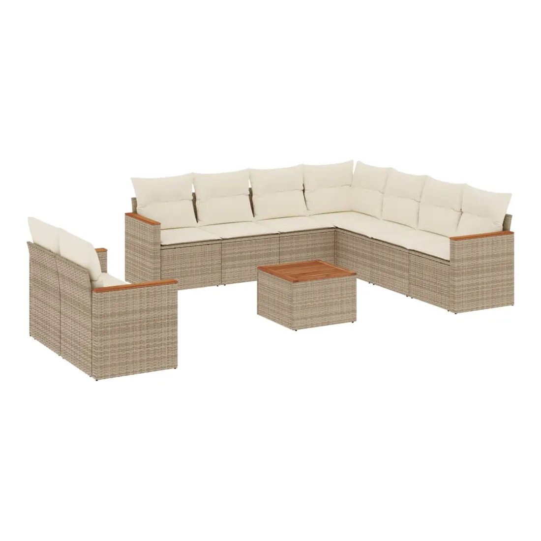 Cet ensemble de canapés de jardin est le complément parfait de votre arrière-cour, terrasse ou patio, offrant un espace confortable et accueillant pour discuter avec la famille et les amis ou simplement se détendre et profiter de l'extérieur. Matériau durable : la résine tressée, également connue sous le nom de poly rotin, est un matériau synthétique solide et nécessitant peu d'entretien qui ressemble au rotin naturel. Il est léger, facile à nettoyer et couramment utilisé pour les meubles d'extérieur en raison de sa durabilité et de ses propriétés de résistance aux intempéries.Dessus stable et facile à nettoyer : cette table de jardin a un dessus en bois d'acacia robuste, durable et facile à nettoyer avec un chiffon humide.Housse amovible et lavable : ces coussins de siège sont dotés de housses amovibles pour un lavage et un entretien faciles.Cadre robuste et stable : le cadre en acier enduit de poudre assure la solidité et la stabilité du meuble de jardin pour une utilisation quotidienne à l'extérieur.Conception modulaire : cet ensemble de meubles d'extérieur a une conception modulaire, ce qui le rend complètement flexible et facile à déplacer, afin que vous puissiez créer un agencement de meubles d'extérieur personnalisé. Bon à savoir :Pour que vos meubles d'extérieur restent beaux, nous vous recommandons de les protéger avec une housse imperméable.