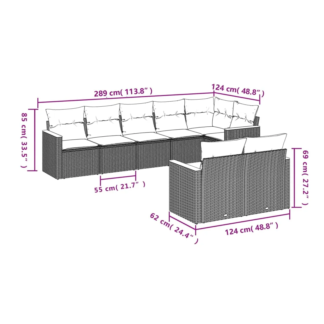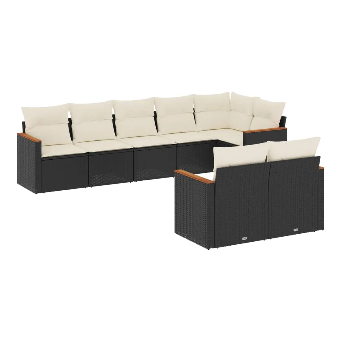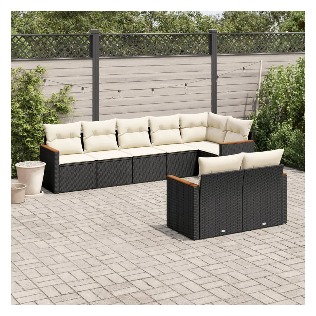 Salon de jardin 8 pcs avec coussins noir résine tressée