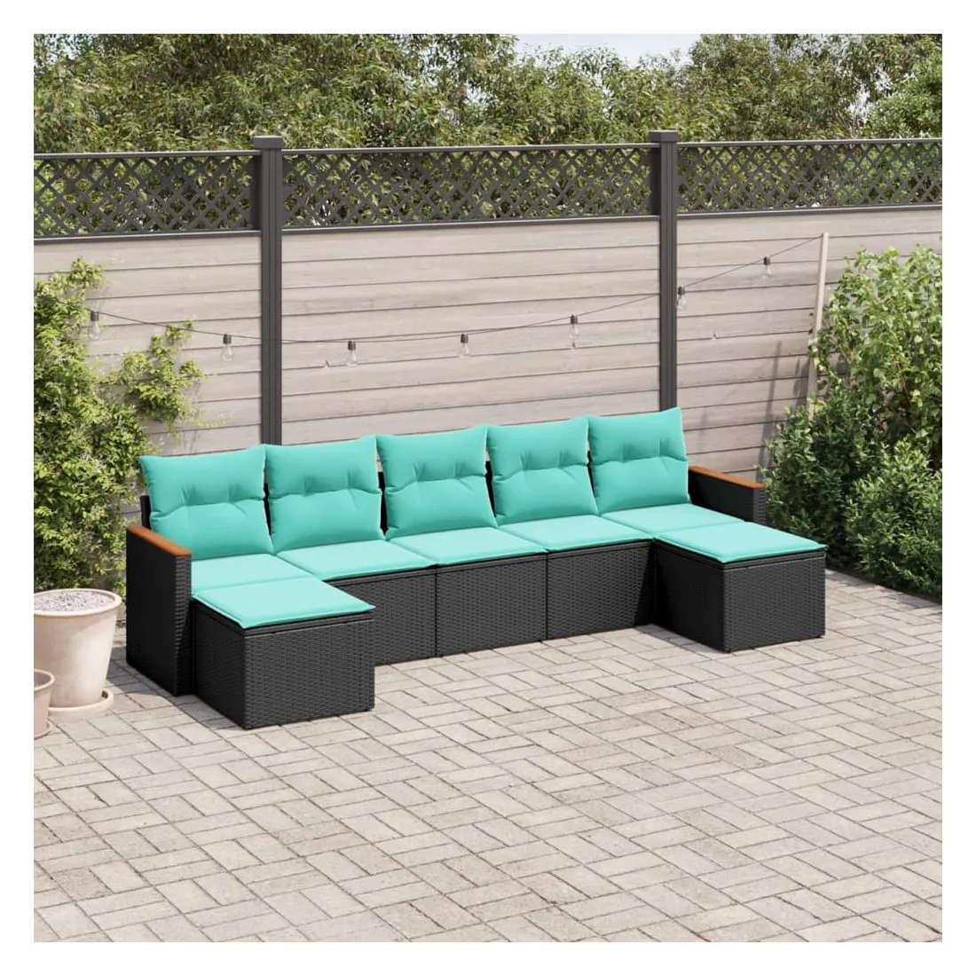 Cet ensemble de canapés de jardin est le complément parfait de votre arrière-cour, terrasse ou patio, offrant un espace confortable et accueillant pour discuter avec la famille et les amis ou simplement se détendre et profiter de l'extérieur. Matériau durable : la résine tressée, également connue sous le nom de poly rotin, est un matériau synthétique solide et nécessitant peu d'entretien qui ressemble au rotin naturel. Elle est légère, facile à nettoyer et couramment utilisée pour les meubles d'extérieur en raison de sa durabilité et de ses propriétés de résistance aux intempéries.Housse amovible et lavable : ces coussins de siège sont dotés de housses amovibles pour un lavage et un entretien faciles.Cadre robuste et stable : le cadre en acier enduit de poudre assure la solidité et la stabilité du meuble de jardin pour une utilisation quotidienne à l'extérieur.Conception modulaire : cet ensemble de meubles d'extérieur a une conception modulaire, ce qui le rend complètement flexible et facile à déplacer, afin que vous puissiez créer un agencement de meubles d'extérieur personnalisé. Bon à savoir :Pour que vos meubles d'extérieur restent beaux, nous vous recommandons de les protéger avec une housse imperméable.