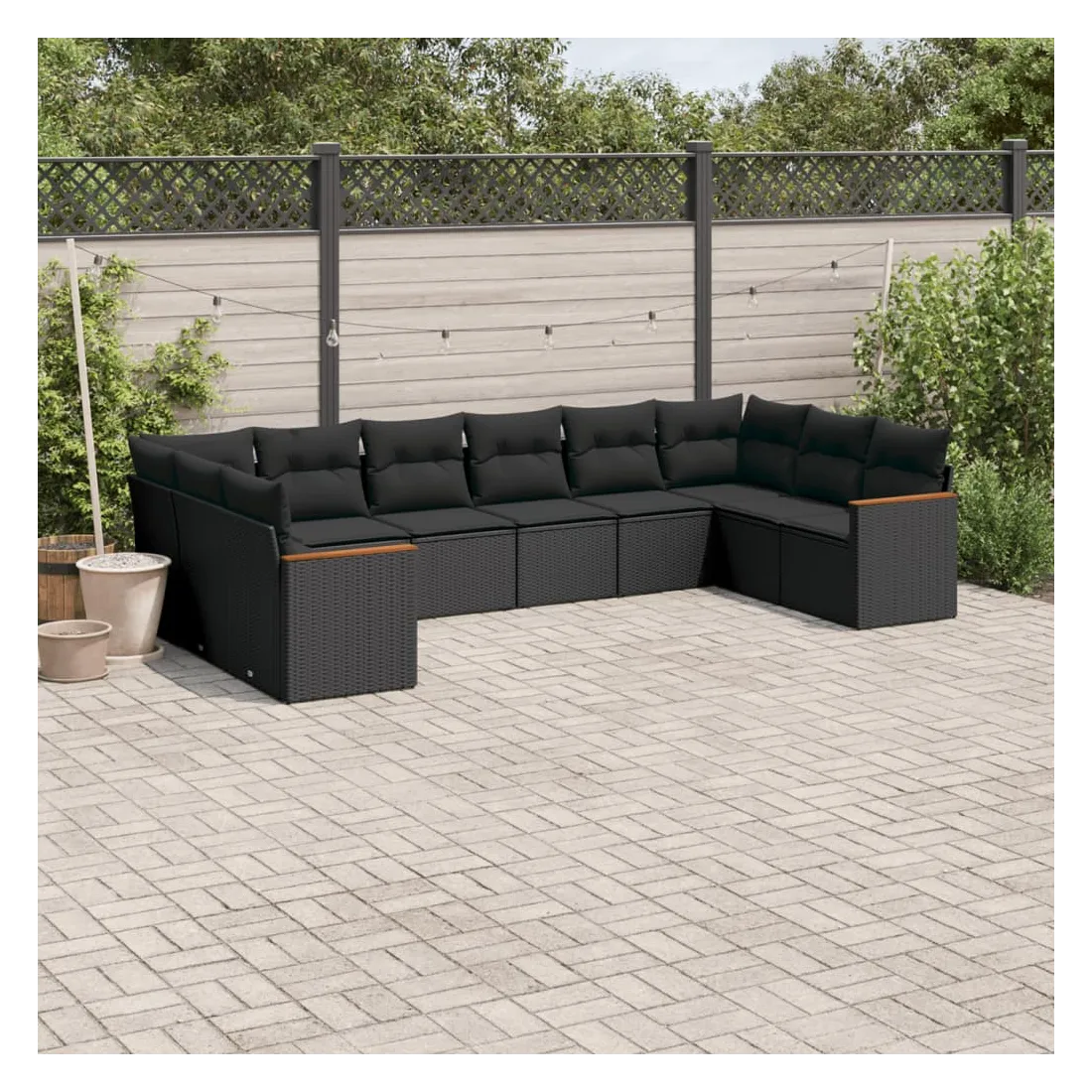 Salon de jardin 10 pcs avec coussins noir résine tressée