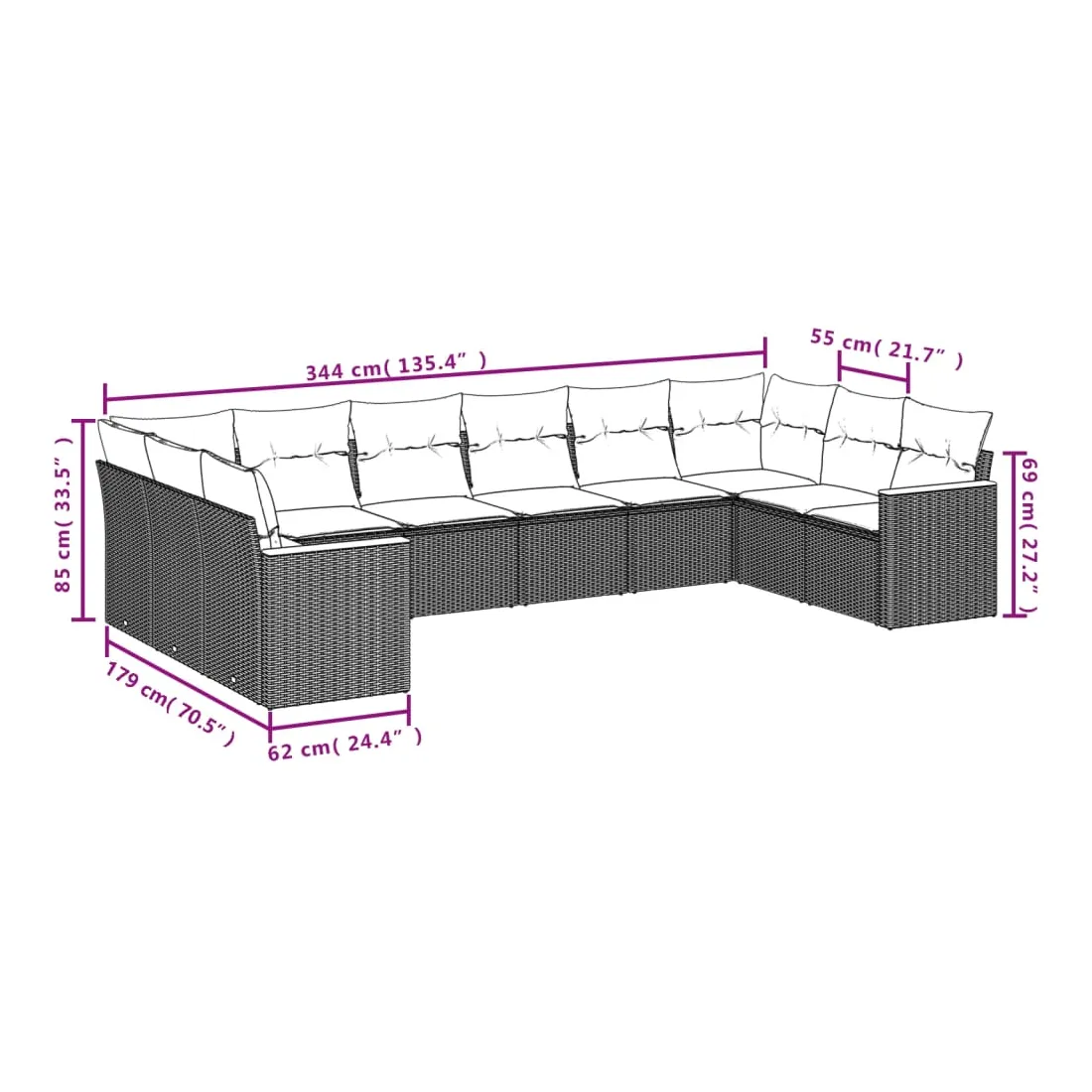 Cet ensemble de canapés de jardin est le complément parfait de votre arrière-cour, terrasse ou patio, offrant un espace confortable et accueillant pour discuter avec la famille et les amis ou simplement se détendre et profiter de l'extérieur. Matériau durable : la résine tressée, également connue sous le nom de poly rotin, est un matériau synthétique solide et nécessitant peu d'entretien qui ressemble au rotin naturel. Il est léger, facile à nettoyer et couramment utilisé pour les meubles d'extérieur en raison de sa durabilité et de ses propriétés de résistance aux intempéries.Housse amovible et lavable : ces coussins de siège sont dotés de housses amovibles pour un lavage et un entretien faciles.Cadre robuste et stable : le cadre en acier enduit de poudre assure la solidité et la stabilité du meuble de jardin pour une utilisation quotidienne à l'extérieur.Conception modulaire : cet ensemble de meubles d'extérieur a une conception modulaire, ce qui le rend complètement flexible et facile à déplacer, afin que vous puissiez créer un agencement de meubles d'extérieur personnalisé. Bon à savoir :Pour que vos meubles d'extérieur restent beaux, nous vous recommandons de les protéger avec une housse imperméable.
