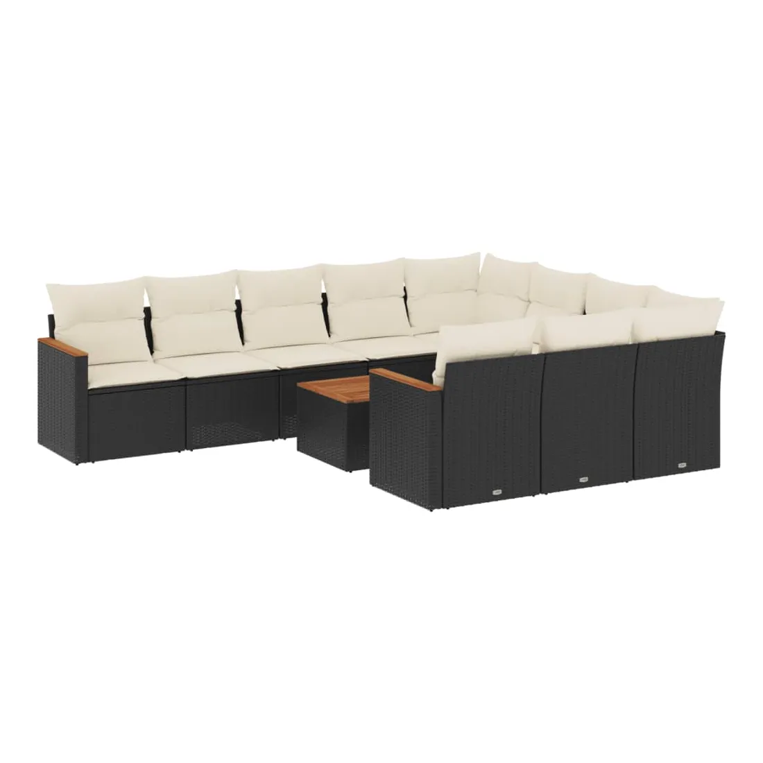 Salon de jardin 11 pcs avec coussins noir résine tressée