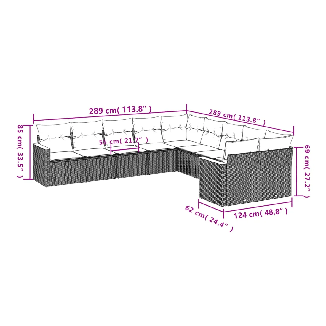 - Dimensions du coussin de dossier : 55 x 45 x 13 cm (L x l x é)