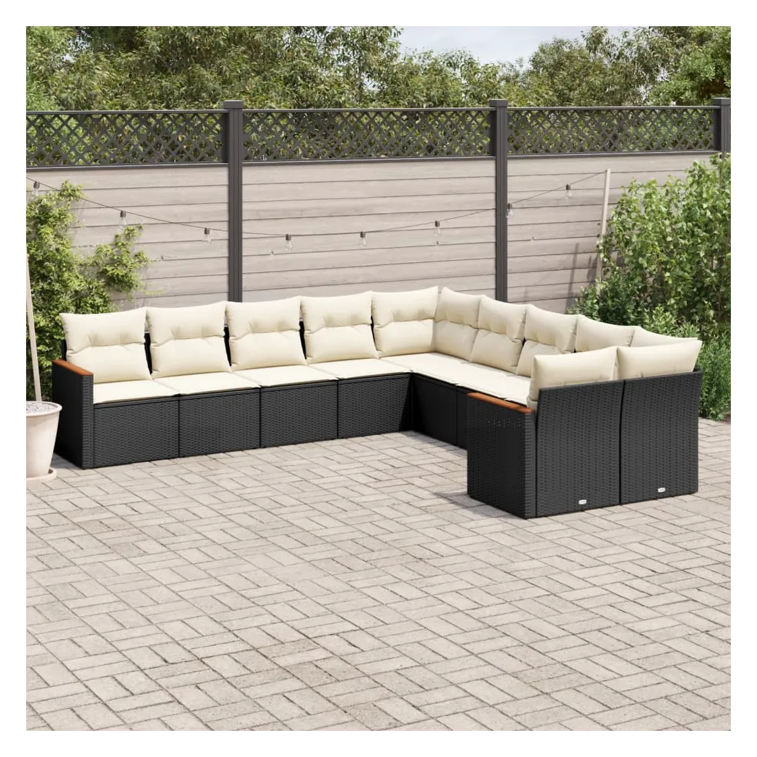 Salon de jardin 10 pcs avec coussins noir résine tressée