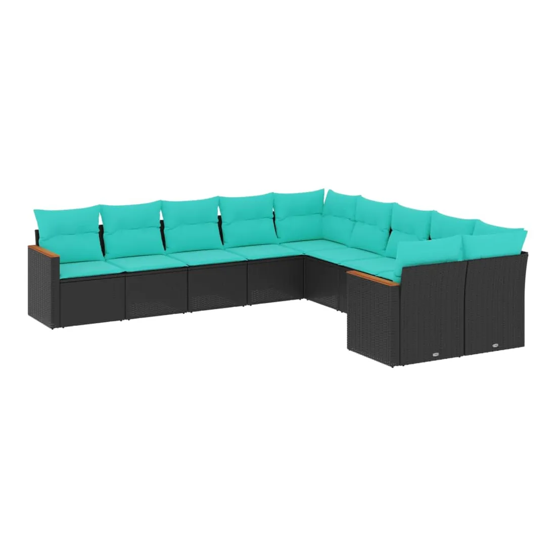 Salon de jardin 10 pcs avec coussins noir résine tressée
