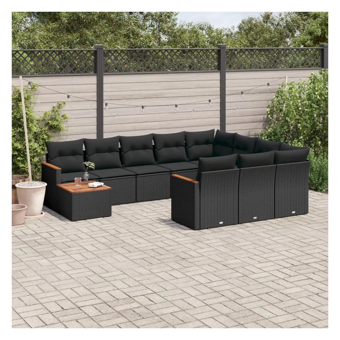 Cet ensemble de canapés de jardin est le complément parfait de votre arrière-cour, terrasse ou patio, offrant un espace confortable et accueillant pour discuter avec la famille et les amis ou simplement se détendre et profiter de l'extérieur. Matériau durable : la résine tressée, également connue sous le nom de poly rotin, est un matériau synthétique solide et nécessitant peu d'entretien qui ressemble au rotin naturel. Il est léger, facile à nettoyer et couramment utilisé pour les meubles d'extérieur en raison de sa durabilité et de ses propriétés de résistance aux intempéries.Dessus stable et facile à nettoyer : cette table de jardin a un dessus en bois d'acacia robuste, durable et facile à nettoyer avec un chiffon humide.Housse amovible et lavable : ces coussins de siège sont dotés de housses amovibles pour un lavage et un entretien faciles.Cadre robuste et stable : le cadre en acier enduit de poudre assure la solidité et la stabilité du meuble de jardin pour une utilisation quotidienne à l'extérieur.Conception modulaire : cet ensemble de meubles d'extérieur a une conception modulaire, ce qui le rend complètement flexible et facile à déplacer, afin que vous puissiez créer un agencement de meubles d'extérieur personnalisé. Bon à savoir :Pour que vos meubles d'extérieur restent beaux, nous vous recommandons de les protéger avec une housse imperméable.