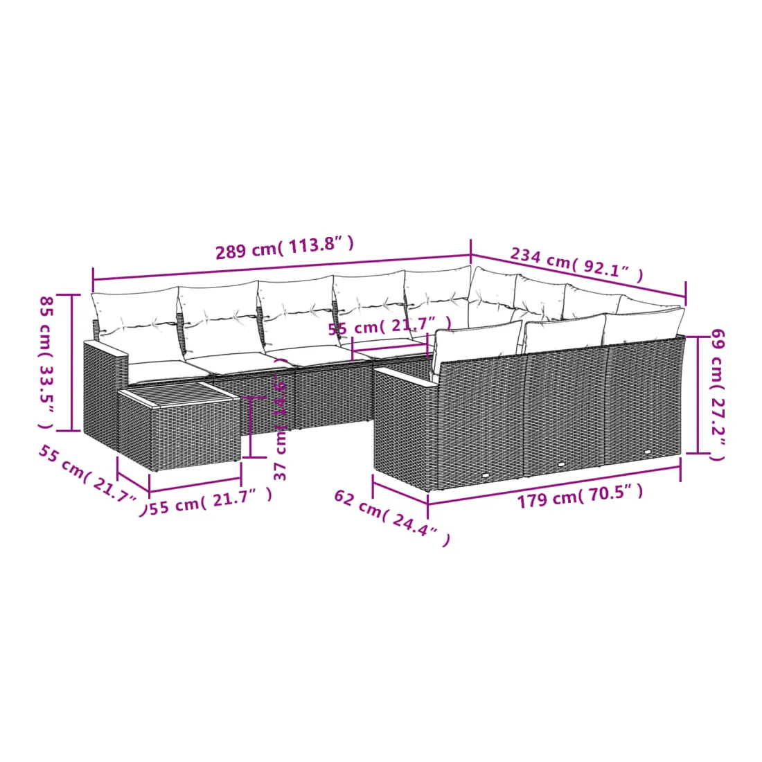 - Dimensions du coussin de siège : 55 x 55 x 3 cm (l x P x é)