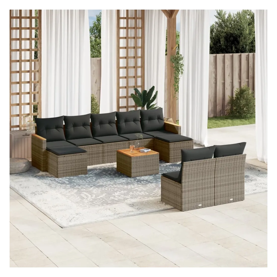 Cet ensemble de canapés de jardin est le complément parfait de votre arrière-cour, terrasse ou patio, offrant un espace confortable et accueillant pour discuter avec la famille et les amis ou simplement se détendre et profiter de l'extérieur. Matériau durable : la résine tressée, également connue sous le nom de poly rotin, est un matériau synthétique solide et nécessitant peu d'entretien qui ressemble au rotin naturel. Il est léger, facile à nettoyer et couramment utilisé pour les meubles d'extérieur en raison de sa durabilité et de ses propriétés de résistance aux intempéries.Dessus stable et facile à nettoyer : cette table de jardin a un dessus en bois d'acacia robuste, durable et facile à nettoyer avec un chiffon humide.Housse amovible et lavable : ces coussins de siège sont dotés de housses amovibles pour un lavage et un entretien faciles.Cadre robuste et stable : le cadre en acier enduit de poudre assure la solidité et la stabilité du meuble de jardin pour une utilisation quotidienne à l'extérieur.Conception modulaire : cet ensemble de meubles d'extérieur a une conception modulaire, ce qui le rend complètement flexible et facile à déplacer, afin que vous puissiez créer un agencement de meubles d'extérieur personnalisé. Bon à savoir :Pour que vos meubles d'extérieur restent beaux, nous vous recommandons de les protéger avec une housse imperméable.