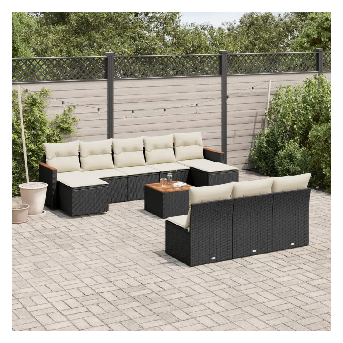 Cet ensemble de canapés de jardin est le complément parfait de votre arrière-cour, terrasse ou patio, offrant un espace confortable et accueillant pour discuter avec la famille et les amis ou simplement se détendre et profiter de l'extérieur. Matériau durable : la résine tressée, également connue sous le nom de poly rotin, est un matériau synthétique solide et nécessitant peu d'entretien qui ressemble au rotin naturel. Il est léger, facile à nettoyer et couramment utilisé pour les meubles d'extérieur en raison de sa durabilité et de ses propriétés de résistance aux intempéries.Dessus stable et facile à nettoyer : cette table de jardin a un dessus en bois d'acacia robuste, durable et facile à nettoyer avec un chiffon humide.Housse amovible et lavable : ces coussins de siège sont dotés de housses amovibles pour un lavage et un entretien faciles.Cadre robuste et stable : le cadre en acier enduit de poudre assure la solidité et la stabilité du meuble de jardin pour une utilisation quotidienne à l'extérieur.Conception modulaire : cet ensemble de meubles d'extérieur a une conception modulaire, ce qui le rend complètement flexible et facile à déplacer, afin que vous puissiez créer un agencement de meubles d'extérieur personnalisé. Bon à savoir :Pour que vos meubles d'extérieur restent beaux, nous vous recommandons de les protéger avec une housse imperméable.