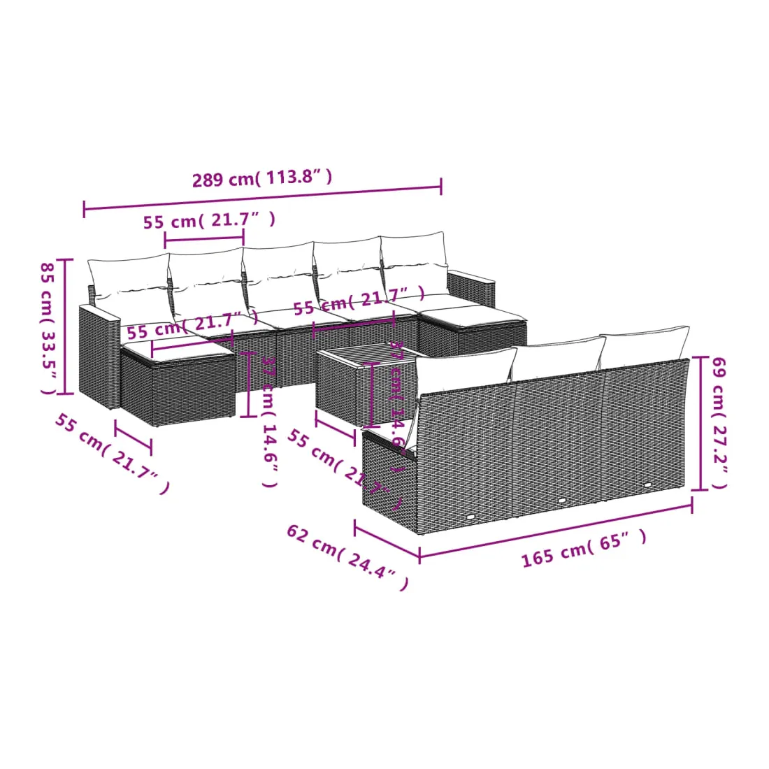 - Dimensions du coussin de dossier : 55 x 45 x 13 cm (L x l x é)