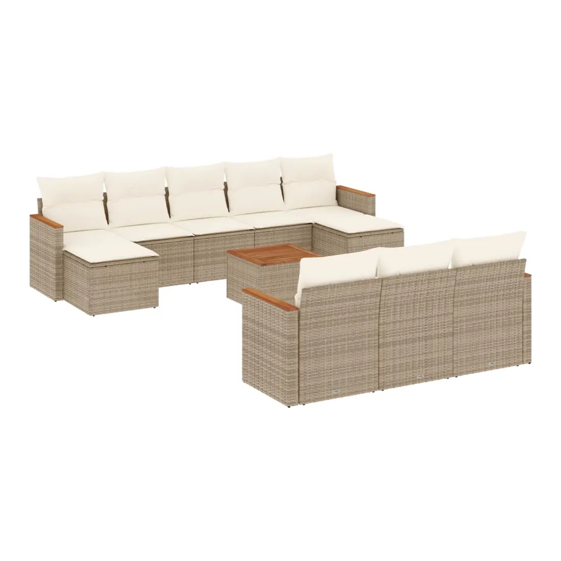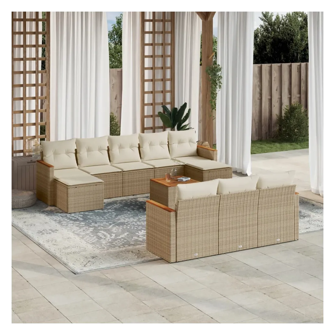 Cet ensemble de canapés de jardin est le complément parfait de votre arrière-cour, terrasse ou patio, offrant un espace confortable et accueillant pour discuter avec la famille et les amis ou simplement se détendre et profiter de l'extérieur. Matériau durable : la résine tressée, également connue sous le nom de poly rotin, est un matériau synthétique solide et nécessitant peu d'entretien qui ressemble au rotin naturel. Il est léger, facile à nettoyer et couramment utilisé pour les meubles d'extérieur en raison de sa durabilité et de ses propriétés de résistance aux intempéries.Dessus stable et facile à nettoyer : cette table de jardin a un dessus en bois d'acacia robuste, durable et facile à nettoyer avec un chiffon humide.Housse amovible et lavable : ces coussins de siège sont dotés de housses amovibles pour un lavage et un entretien faciles.Cadre robuste et stable : le cadre en acier enduit de poudre assure la solidité et la stabilité du meuble de jardin pour une utilisation quotidienne à l'extérieur.Conception modulaire : cet ensemble de meubles d'extérieur a une conception modulaire, ce qui le rend complètement flexible et facile à déplacer, afin que vous puissiez créer un agencement de meubles d'extérieur personnalisé. Bon à savoir :Pour que vos meubles d'extérieur restent beaux, nous vous recommandons de les protéger avec une housse imperméable.