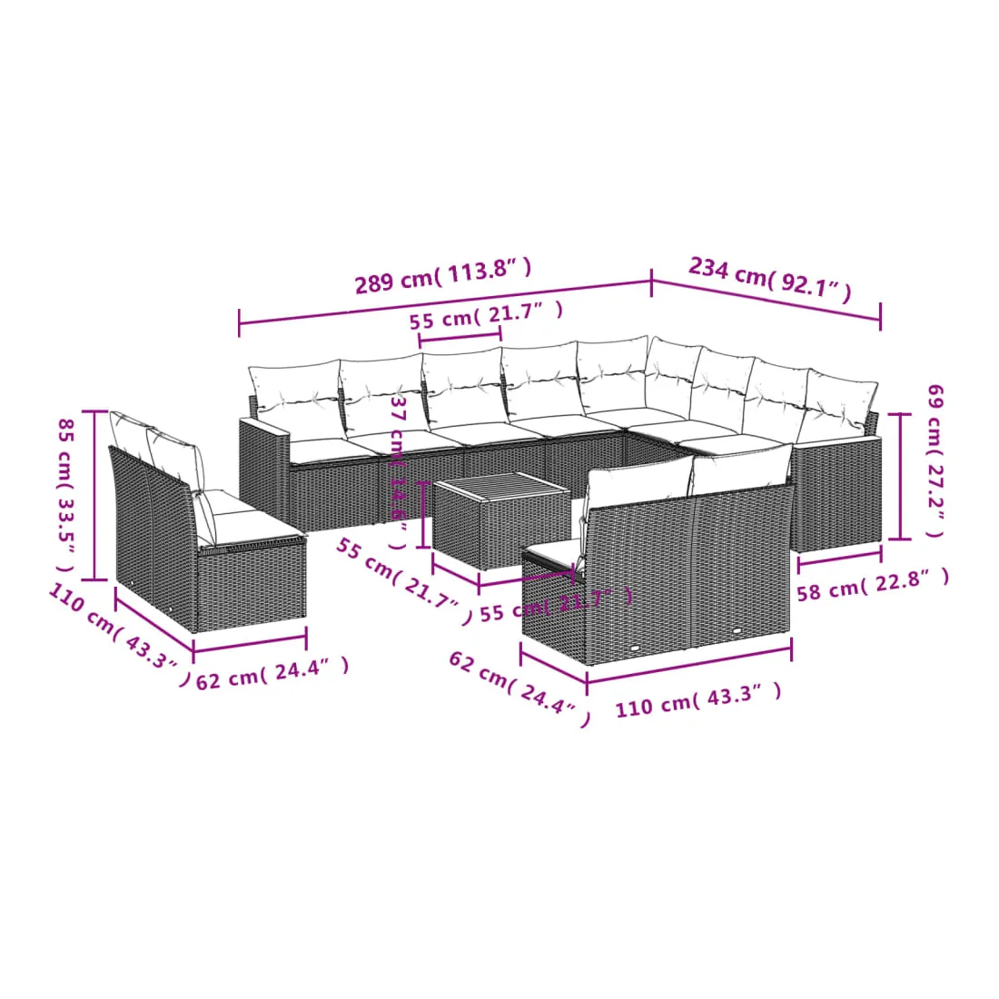 - Dimensions du coussin de dossier : 55 x 45 x 13 cm (L x l x é)
