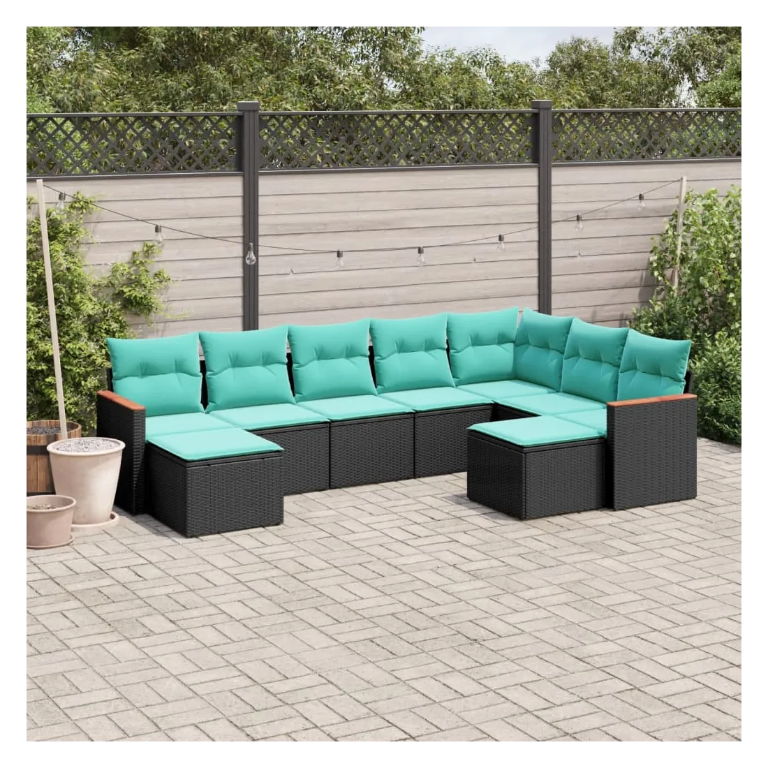 Cet ensemble de canapés de jardin est le complément parfait de votre arrière-cour, terrasse ou patio, offrant un espace confortable et accueillant pour discuter avec la famille et les amis ou simplement se détendre et profiter de l'extérieur. Matériau durable : la résine tressée, également connue sous le nom de poly rotin, est un matériau synthétique solide et nécessitant peu d'entretien qui ressemble au rotin naturel. Elle est légère, facile à nettoyer et couramment utilisée pour les meubles d'extérieur en raison de sa durabilité et de ses propriétés de résistance aux intempéries.Housse amovible et lavable : ces coussins de siège sont dotés de housses amovibles pour un lavage et un entretien faciles.Cadre robuste et stable : le cadre en acier enduit de poudre assure la solidité et la stabilité du meuble de jardin pour une utilisation quotidienne à l'extérieur.Conception modulaire : cet ensemble de meubles d'extérieur a une conception modulaire, ce qui le rend complètement flexible et facile à déplacer, afin que vous puissiez créer un agencement de meubles d'extérieur personnalisé. Bon à savoir :Pour que vos meubles d'extérieur restent beaux, nous vous recommandons de les protéger avec une housse imperméable.