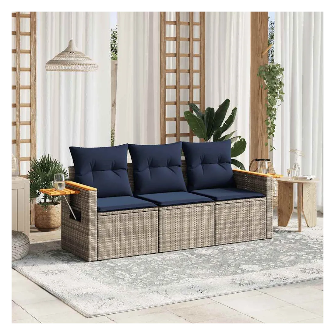 Cet ensemble de canapés de jardin est le complément parfait de votre arrière-cour, terrasse ou patio, offrant un espace confortable et accueillant pour discuter avec la famille et les amis ou simplement se détendre et profiter de l'extérieur. Matériau durable : la résine tressée, également connue sous le nom de poly rotin, est un matériau synthétique solide et nécessitant peu d'entretien qui ressemble au rotin naturel. Il est léger, facile à nettoyer et couramment utilisé pour les meubles d'extérieur en raison de sa durabilité et de ses propriétés de résistance aux intempéries.Table d'appoint pratique : ce mobilier d'extérieur comprend une table d'appoint pliable avec un ressort à gaz sur les accoudoirs, offrant un endroit pratique pour garder vos essentiels à portée de main.Housse amovible et lavable : ces coussins de siège sont dotés de housses amovibles pour un lavage et un entretien faciles.Conception modulaire : cet ensemble de meubles d'extérieur a une conception modulaire, ce qui le rend complètement flexible et facile à déplacer, afin que vous puissiez créer un agencement de meubles d'extérieur personnalisé. Bon à savoir :Pour que vos meubles d'extérieur restent beaux, nous vous recommandons de les protéger avec une housse imperméable.