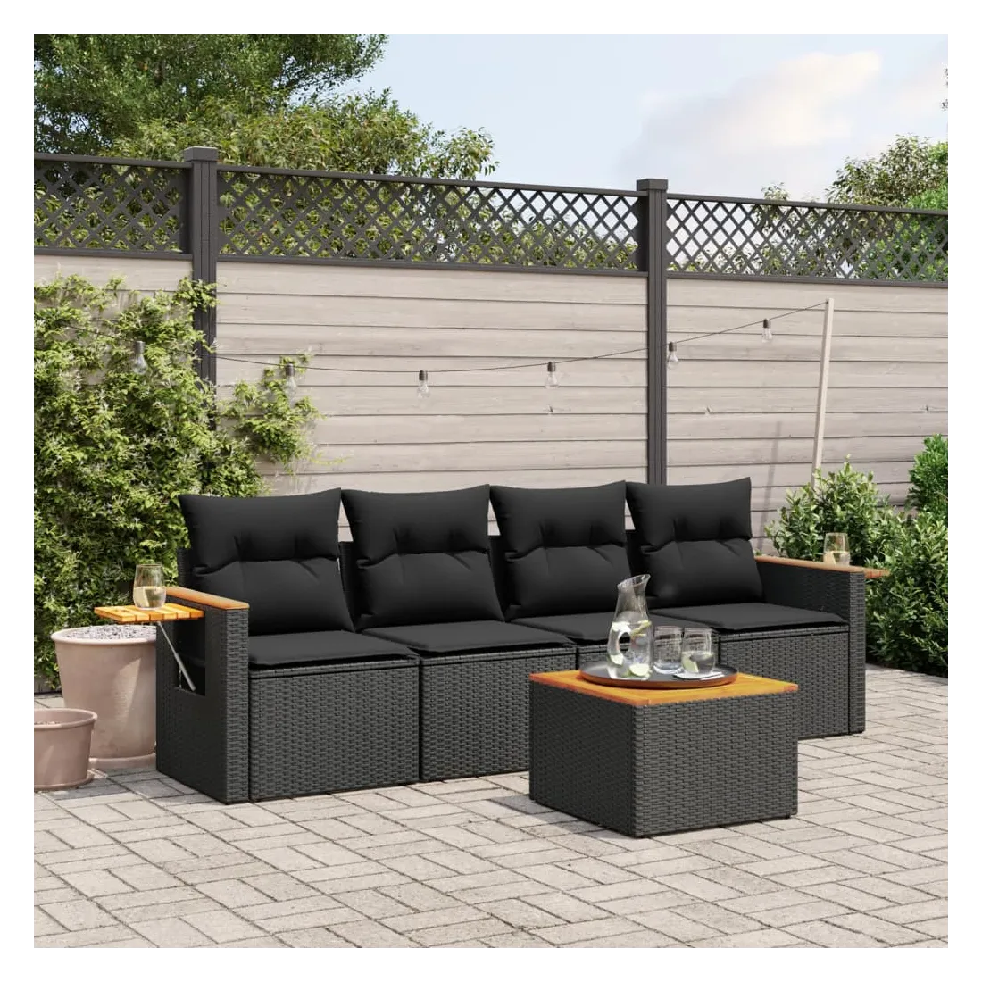 Cet ensemble de canapés de jardin est le complément parfait de votre arrière-cour, terrasse ou patio, offrant un espace confortable et accueillant pour discuter avec la famille et les amis ou simplement se détendre et profiter de l'extérieur. Matériau durable : la résine tressée, également connue sous le nom de poly rotin, est un matériau synthétique solide et nécessitant peu d'entretien qui ressemble au rotin naturel. Il est léger, facile à nettoyer et couramment utilisé pour les meubles d'extérieur en raison de sa durabilité et de ses propriétés de résistance aux intempéries.Dessus stable et facile à nettoyer : cette table de jardin a un dessus en bois d'acacia robuste, durable et facile à nettoyer avec un chiffon humide.Table d'appoint pratique : ce mobilier d'extérieur comprend une table d'appoint pliable avec un ressort à gaz sur les accoudoirs, offrant un endroit pratique pour garder vos essentiels à portée de main.Housse amovible et lavable : ces coussins de siège sont dotés de housses amovibles pour un lavage et un entretien faciles.Conception modulaire : cet ensemble de meubles d'extérieur a une conception modulaire, ce qui le rend complètement flexible et facile à déplacer, afin que vous puissiez créer un agencement de meubles d'extérieur personnalisé. Bon à savoir :Pour que vos meubles d'extérieur restent beaux, nous vous recommandons de les protéger avec une housse imperméable.