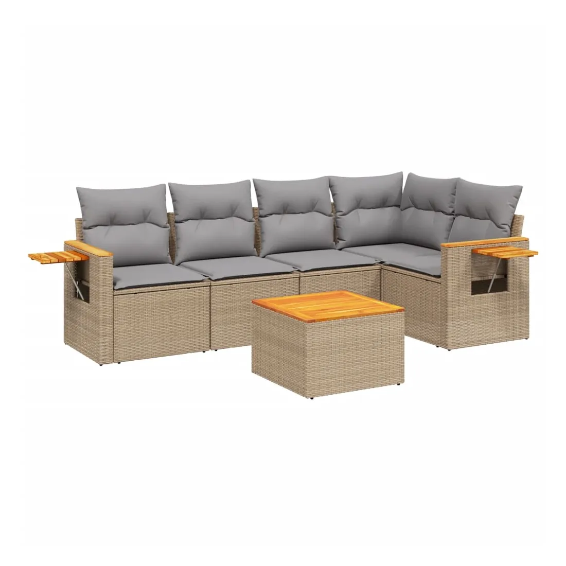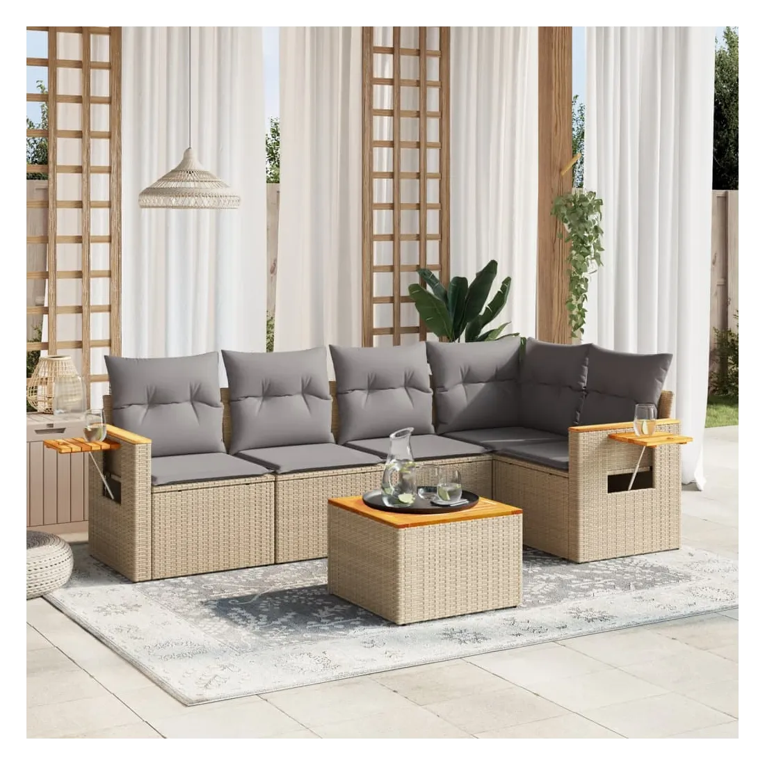 Salon de jardin avec coussins 6 pcs beige résine tressée