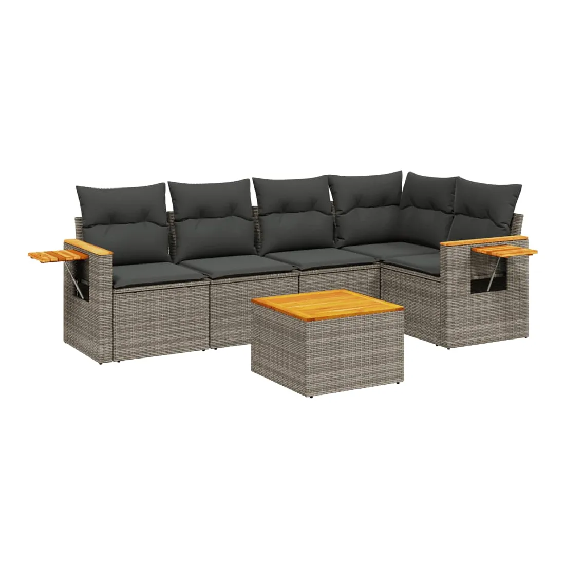 Cet ensemble de canapés de jardin est le complément parfait de votre arrière-cour, terrasse ou patio, offrant un espace confortable et accueillant pour discuter avec la famille et les amis ou simplement se détendre et profiter de l'extérieur. Matériau durable : la résine tressée, également connue sous le nom de poly rotin, est un matériau synthétique solide et nécessitant peu d'entretien qui ressemble au rotin naturel. Il est léger, facile à nettoyer et couramment utilisé pour les meubles d'extérieur en raison de sa durabilité et de ses propriétés de résistance aux intempéries.Dessus stable et facile à nettoyer : cette table de jardin a un dessus en bois d'acacia robuste, durable et facile à nettoyer avec un chiffon humide.Table d'appoint pratique : ce mobilier d'extérieur comprend une table d'appoint pliable avec un ressort à gaz sur les accoudoirs, offrant un endroit pratique pour garder vos essentiels à portée de main.Housse amovible et lavable : ces coussins de siège sont dotés de housses amovibles pour un lavage et un entretien faciles.Conception modulaire : cet ensemble de meubles d'extérieur a une conception modulaire, ce qui le rend complètement flexible et facile à déplacer, afin que vous puissiez créer un agencement de meubles d'extérieur personnalisé. Bon à savoir :Pour que vos meubles d'extérieur restent beaux, nous vous recommandons de les protéger avec une housse imperméable.