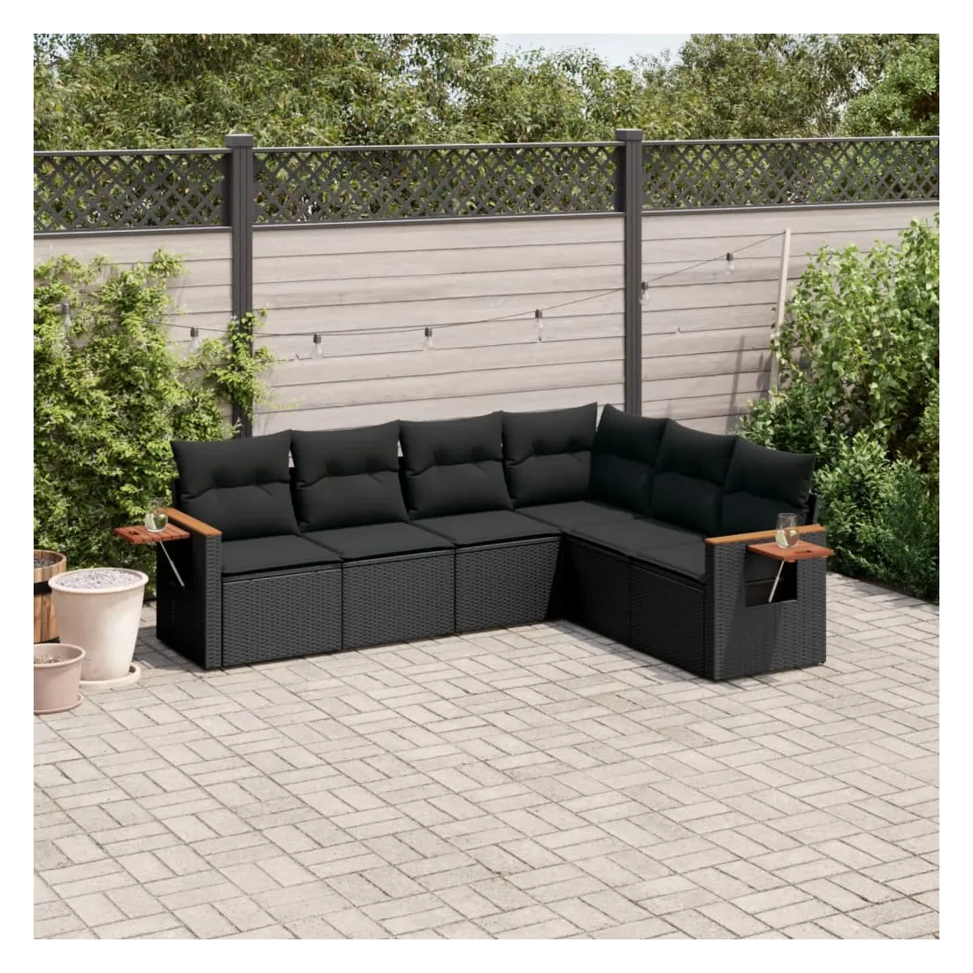 Cet ensemble de canapés de jardin est le complément parfait de votre arrière-cour, terrasse ou patio, offrant un espace confortable et accueillant pour discuter avec la famille et les amis ou simplement se détendre et profiter de l'extérieur. Matériau durable : la résine tressée, également connue sous le nom de poly rotin, est un matériau synthétique solide et nécessitant peu d'entretien qui ressemble au rotin naturel. Il est léger, facile à nettoyer et couramment utilisé pour les meubles d'extérieur en raison de sa durabilité et de ses propriétés de résistance aux intempéries.Table d'appoint pratique : ce mobilier d'extérieur comprend une table d'appoint pliable avec un ressort à gaz sur les accoudoirs, offrant un endroit pratique pour garder vos essentiels à portée de main.Housse amovible et lavable : ces coussins de siège sont dotés de housses amovibles pour un lavage et un entretien faciles.Conception modulaire : cet ensemble de meubles d'extérieur a une conception modulaire, ce qui le rend complètement flexible et facile à déplacer, afin que vous puissiez créer un agencement de meubles d'extérieur personnalisé. Bon à savoir :Pour que vos meubles d'extérieur restent beaux, nous vous recommandons de les protéger avec une housse imperméable.