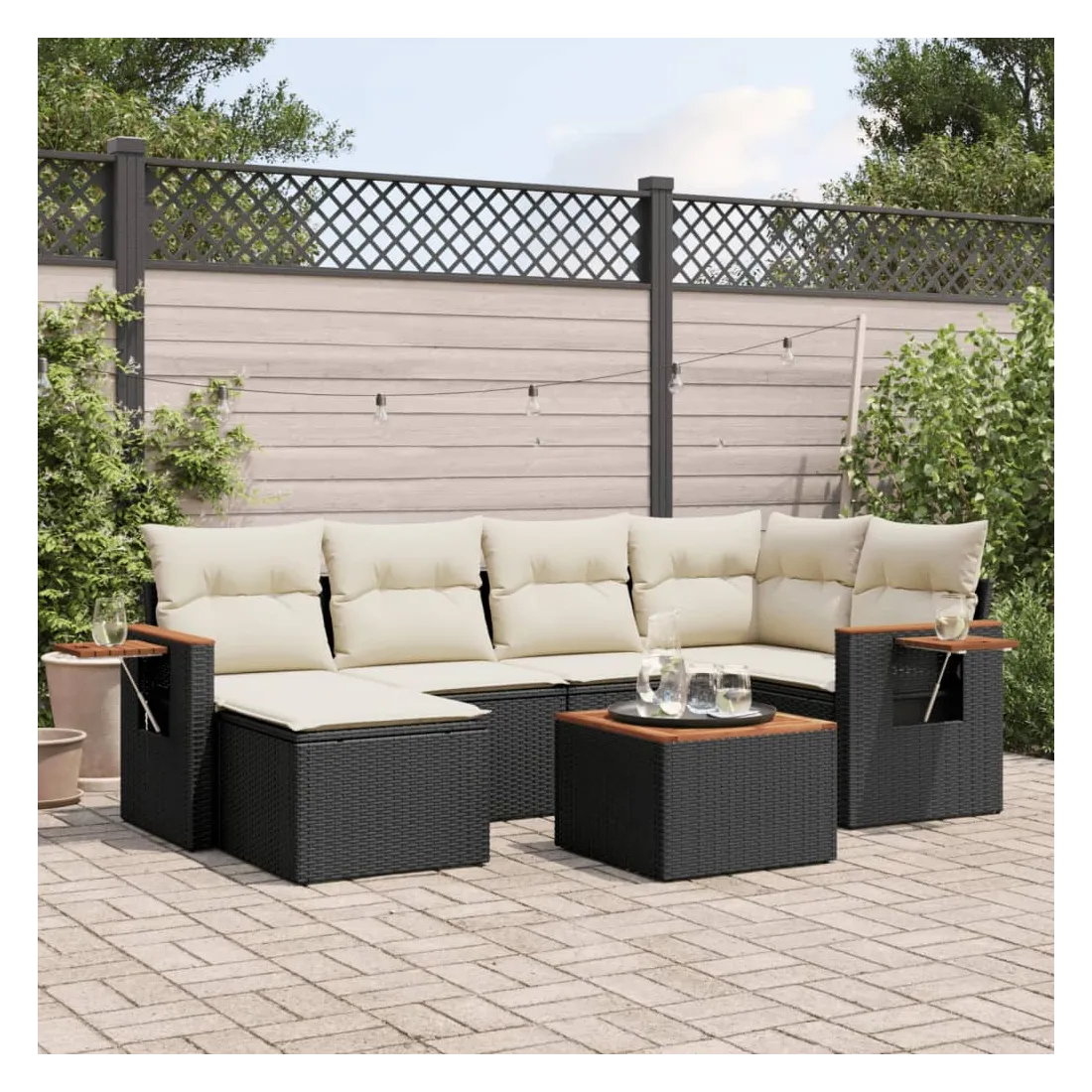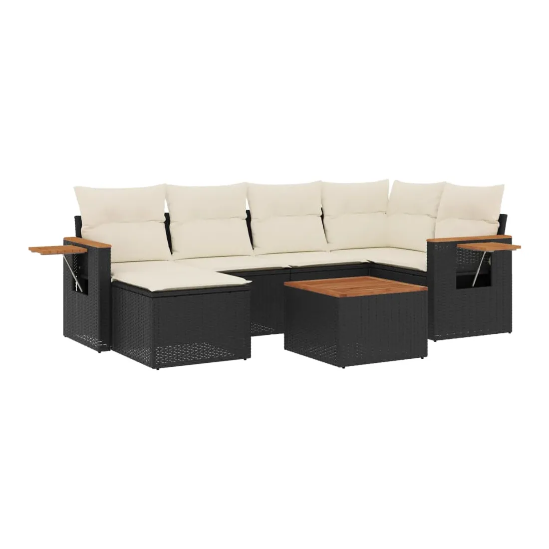 Cet ensemble de canapés de jardin est le complément parfait de votre arrière-cour, terrasse ou patio, offrant un espace confortable et accueillant pour discuter avec la famille et les amis ou simplement se détendre et profiter de l'extérieur. Matériau durable : la résine tressée, également connue sous le nom de poly rotin, est un matériau synthétique solide et nécessitant peu d'entretien qui ressemble au rotin naturel. Il est léger, facile à nettoyer et couramment utilisé pour les meubles d'extérieur en raison de sa durabilité et de ses propriétés de résistance aux intempéries.Dessus stable et facile à nettoyer : cette table de jardin a un dessus en bois d'acacia robuste, durable et facile à nettoyer avec un chiffon humide.Table d'appoint pratique : ce mobilier d'extérieur comprend une table d'appoint pliable avec un ressort à gaz sur les accoudoirs, offrant un endroit pratique pour garder vos essentiels à portée de main.Housse amovible et lavable : ces coussins de siège sont dotés de housses amovibles pour un lavage et un entretien faciles.Conception modulaire : cet ensemble de meubles d'extérieur a une conception modulaire, ce qui le rend complètement flexible et facile à déplacer, afin que vous puissiez créer un agencement de meubles d'extérieur personnalisé. Bon à savoir :Pour que vos meubles d'extérieur restent beaux, nous vous recommandons de les protéger avec une housse imperméable.