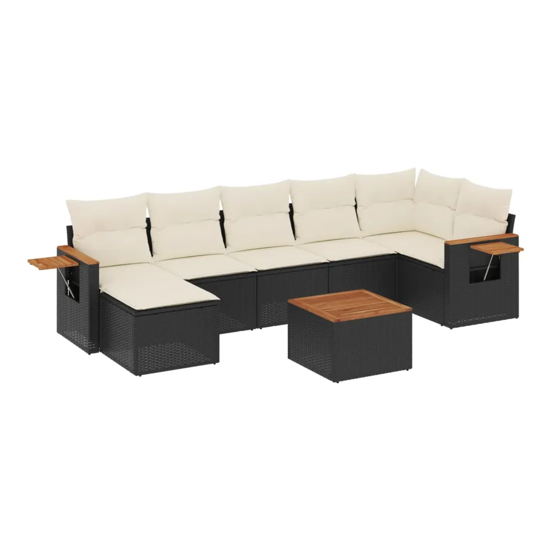 Cet ensemble de canapés de jardin est le complément parfait de votre arrière-cour, terrasse ou patio, offrant un espace confortable et accueillant pour discuter avec la famille et les amis ou simplement se détendre et profiter de l'extérieur. Matériau durable : la résine tressée, également connue sous le nom de poly rotin, est un matériau synthétique solide et nécessitant peu d'entretien qui ressemble au rotin naturel. Il est léger, facile à nettoyer et couramment utilisé pour les meubles d'extérieur en raison de sa durabilité et de ses propriétés de résistance aux intempéries.Dessus stable et facile à nettoyer : cette table de jardin a un dessus en bois d'acacia robuste, durable et facile à nettoyer avec un chiffon humide.Table d'appoint pratique : ce mobilier d'extérieur comprend une table d'appoint pliable avec un ressort à gaz sur les accoudoirs, offrant un endroit pratique pour garder vos essentiels à portée de main.Housse amovible et lavable : ces coussins de siège sont dotés de housses amovibles pour un lavage et un entretien faciles.Conception modulaire : cet ensemble de meubles d'extérieur a une conception modulaire, ce qui le rend complètement flexible et facile à déplacer, afin que vous puissiez créer un agencement de meubles d'extérieur personnalisé. Bon à savoir :Pour que vos meubles d'extérieur restent beaux, nous vous recommandons de les protéger avec une housse imperméable.