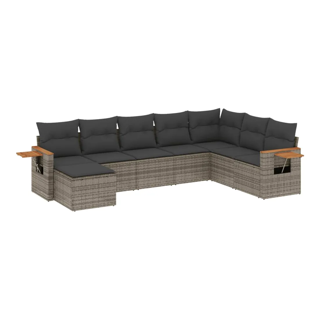 Cet ensemble de canapés de jardin est le complément parfait de votre arrière-cour, terrasse ou patio, offrant un espace confortable et accueillant pour discuter avec la famille et les amis ou simplement se détendre et profiter de l'extérieur. Matériau durable : la résine tressée, également connue sous le nom de poly rotin, est un matériau synthétique solide et nécessitant peu d'entretien qui ressemble au rotin naturel. Il est léger, facile à nettoyer et couramment utilisé pour les meubles d'extérieur en raison de sa durabilité et de ses propriétés de résistance aux intempéries.Table d'appoint pratique : ce mobilier d'extérieur comprend une table d'appoint pliable avec un ressort à gaz sur les accoudoirs, offrant un endroit pratique pour garder vos essentiels à portée de main.Housse amovible et lavable : ces coussins de siège sont dotés de housses amovibles pour un lavage et un entretien faciles.Conception modulaire : cet ensemble de meubles d'extérieur a une conception modulaire, ce qui le rend complètement flexible et facile à déplacer, afin que vous puissiez créer un agencement de meubles d'extérieur personnalisé. Bon à savoir :Pour que vos meubles d'extérieur restent beaux, nous vous recommandons de les protéger avec une housse imperméable.