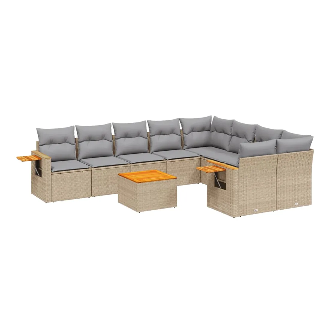 Cet ensemble de canapés de jardin est le complément parfait de votre arrière-cour, terrasse ou patio, offrant un espace confortable et accueillant pour discuter avec la famille et les amis ou simplement se détendre et profiter de l'extérieur. Matériau durable : la résine tressée, également connue sous le nom de poly rotin, est un matériau synthétique solide et nécessitant peu d'entretien qui ressemble au rotin naturel. Il est léger, facile à nettoyer et couramment utilisé pour les meubles d'extérieur en raison de sa durabilité et de ses propriétés de résistance aux intempéries.Dessus stable et facile à nettoyer : cette table de jardin a un dessus en bois d'acacia robuste, durable et facile à nettoyer avec un chiffon humide.Table d'appoint pratique : ce mobilier d'extérieur comprend une table d'appoint pliable avec un ressort à gaz sur les accoudoirs, offrant un endroit pratique pour garder vos essentiels à portée de main.Housse amovible et lavable : ces coussins de siège sont dotés de housses amovibles pour un lavage et un entretien faciles.Conception modulaire : cet ensemble de meubles d'extérieur a une conception modulaire, ce qui le rend complètement flexible et facile à déplacer, afin que vous puissiez créer un agencement de meubles d'extérieur personnalisé. Bon à savoir :Pour que vos meubles d'extérieur restent beaux, nous vous recommandons de les protéger avec une housse imperméable.