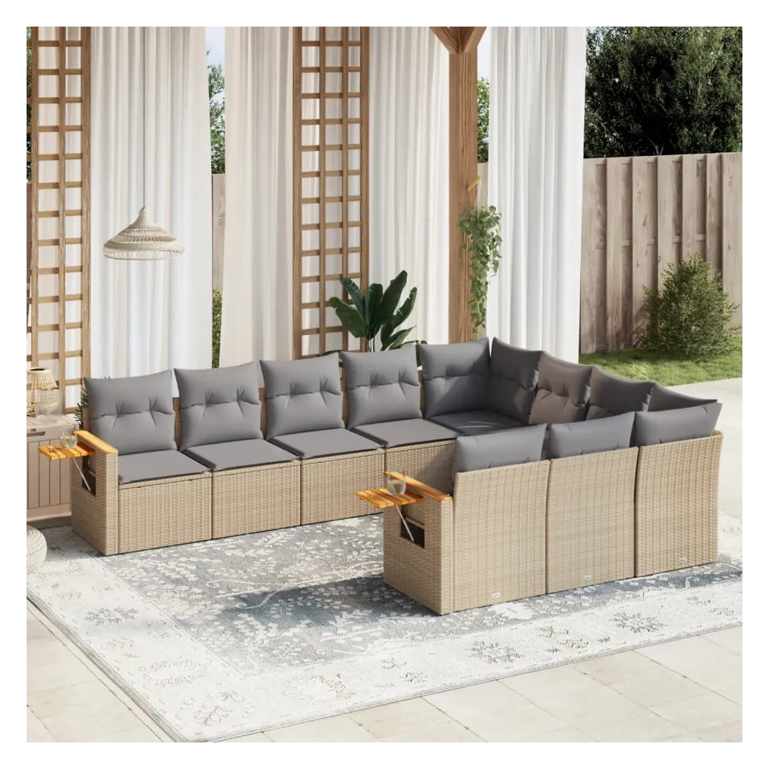 Cet ensemble de canapés de jardin est le complément parfait de votre arrière-cour, terrasse ou patio, offrant un espace confortable et accueillant pour discuter avec la famille et les amis ou simplement se détendre et profiter de l'extérieur. Matériau durable : la résine tressée, également connue sous le nom de poly rotin, est un matériau synthétique solide et nécessitant peu d'entretien qui ressemble au rotin naturel. Il est léger, facile à nettoyer et couramment utilisé pour les meubles d'extérieur en raison de sa durabilité et de ses propriétés de résistance aux intempéries.Table d'appoint pratique : ce mobilier d'extérieur comprend une table d'appoint pliable avec un ressort à gaz sur les accoudoirs, offrant un endroit pratique pour garder vos essentiels à portée de main.Housse amovible et lavable : ces coussins de siège sont dotés de housses amovibles pour un lavage et un entretien faciles.Conception modulaire : cet ensemble de meubles d'extérieur a une conception modulaire, ce qui le rend complètement flexible et facile à déplacer, afin que vous puissiez créer un agencement de meubles d'extérieur personnalisé. Bon à savoir :Pour que vos meubles d'extérieur restent beaux, nous vous recommandons de les protéger avec une housse imperméable.