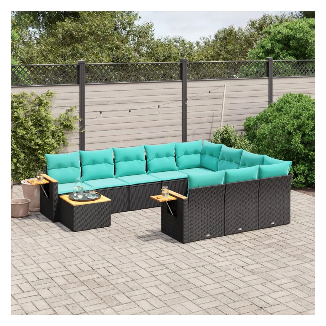 Cet ensemble de canapés de jardin est le complément parfait de votre arrière-cour, terrasse ou patio, offrant un espace confortable et accueillant pour discuter avec la famille et les amis ou simplement se détendre et profiter de l'extérieur. Matériau durable : la résine tressée, également connue sous le nom de poly rotin, est un matériau synthétique solide et nécessitant peu d'entretien qui ressemble au rotin naturel. Il est léger, facile à nettoyer et couramment utilisé pour les meubles d'extérieur en raison de sa durabilité et de ses propriétés de résistance aux intempéries.Dessus stable et facile à nettoyer : cette table de jardin a un dessus en bois d'acacia robuste, durable et facile à nettoyer avec un chiffon humide.Table d'appoint pratique : ce mobilier d'extérieur comprend une table d'appoint pliable avec un ressort à gaz sur les accoudoirs, offrant un endroit pratique pour garder vos essentiels à portée de main.Housse amovible et lavable : ces coussins de siège sont dotés de housses amovibles pour un lavage et un entretien faciles.Conception modulaire : cet ensemble de meubles d'extérieur a une conception modulaire, ce qui le rend complètement flexible et facile à déplacer, afin que vous puissiez créer un agencement de meubles d'extérieur personnalisé. Bon à savoir :Pour que vos meubles d'extérieur restent beaux, nous vous recommandons de les protéger avec une housse imperméable.