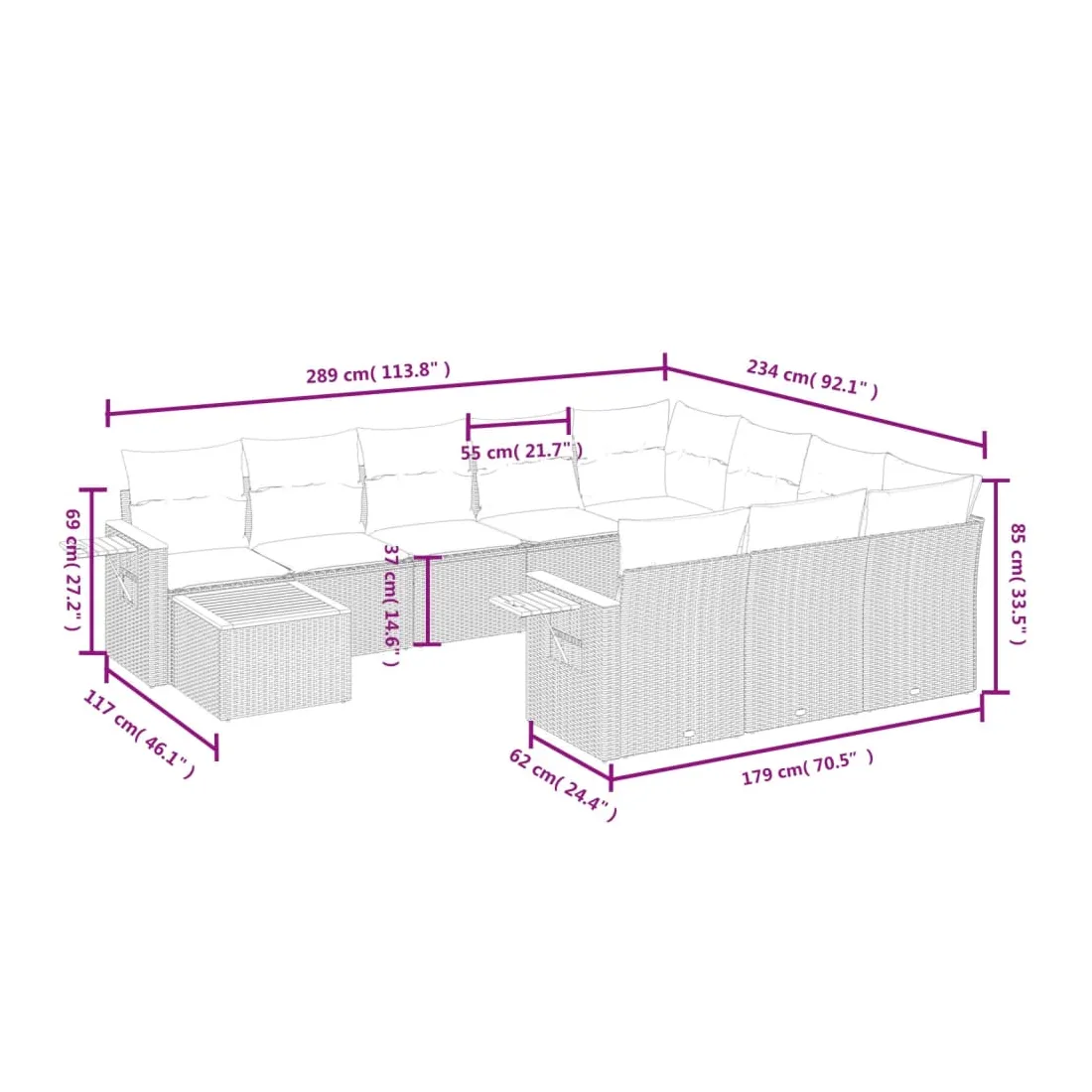 - Dimensions du coussin de dossier : 55 x 45 x 13 cm (L x l x é)