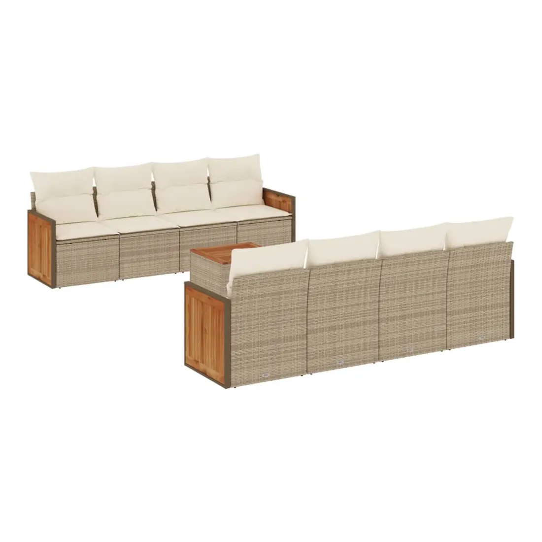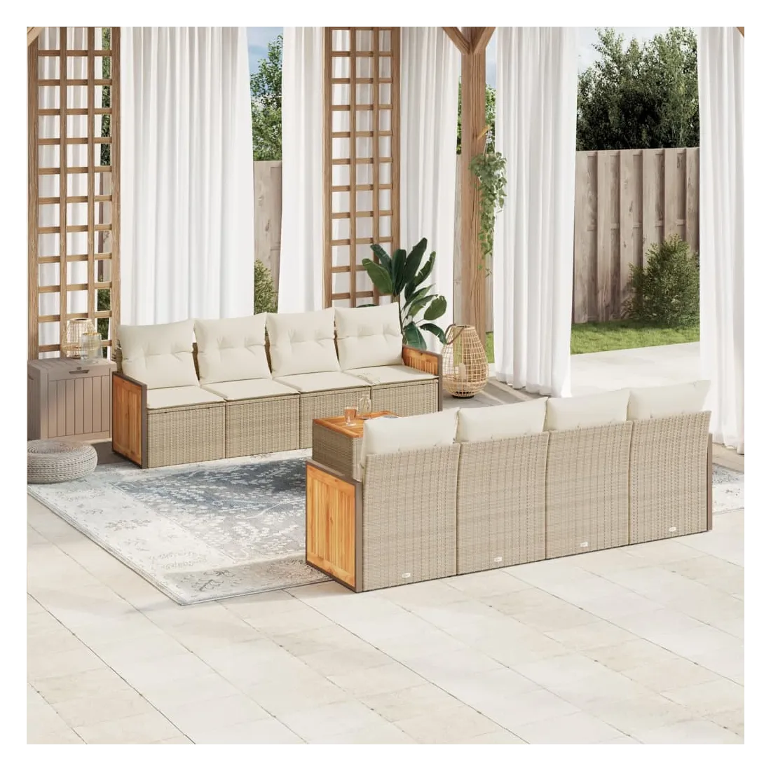 Cet ensemble de canapés de jardin est le complément parfait de votre arrière-cour, terrasse ou patio, offrant un espace confortable et accueillant pour discuter avec la famille et les amis ou simplement se détendre et profiter de l'extérieur. Matériau durable : la résine tressée, également connue sous le nom de poly rotin, est un matériau synthétique solide et nécessitant peu d'entretien qui ressemble au rotin naturel. Il est léger, facile à nettoyer et couramment utilisé pour les meubles d'extérieur en raison de sa durabilité et de ses propriétés de résistance aux intempéries.Expérience d'assise confortable : ce mobilier d'extérieur, doté de coussins épais, offre une expérience d'assise confortable.Dessus stable et facile à nettoyer : cette table de jardin a un dessus en bois d'acacia robuste, durable et facile à nettoyer avec un chiffon humide.Housse amovible et lavable : ces coussins de siège sont dotés de housses amovibles pour un lavage et un entretien faciles.Conception modulaire : cet ensemble de meubles d'extérieur a une conception modulaire, ce qui le rend complètement flexible et facile à déplacer, afin que vous puissiez créer un agencement de meubles d'extérieur personnalisé. Bon à savoir :Pour que vos meubles d'extérieur restent beaux, nous vous recommandons de les protéger avec une housse imperméable.