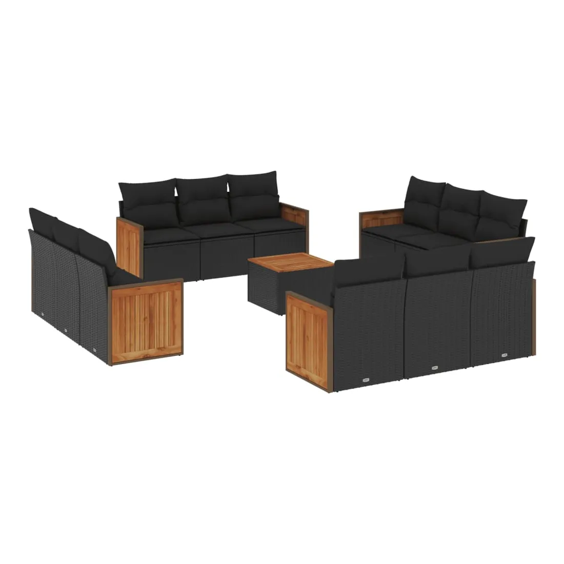 Cet ensemble de canapés de jardin est le complément parfait de votre arrière-cour, terrasse ou patio, offrant un espace confortable et accueillant pour discuter avec la famille et les amis ou simplement se détendre et profiter de l'extérieur. Matériau durable : la résine tressée, également connue sous le nom de poly rotin, est un matériau synthétique solide et nécessitant peu d'entretien qui ressemble au rotin naturel. Il est léger, facile à nettoyer et couramment utilisé pour les meubles d'extérieur en raison de sa durabilité et de ses propriétés de résistance aux intempéries.Expérience d'assise confortable : ce mobilier d'extérieur, doté de coussins épais, offre une expérience d'assise confortable.Dessus stable et facile à nettoyer : cette table de jardin a un dessus en bois d'acacia robuste, durable et facile à nettoyer avec un chiffon humide.Housse amovible et lavable : ces coussins de siège sont dotés de housses amovibles pour un lavage et un entretien faciles.Conception modulaire : cet ensemble de meubles d'extérieur a une conception modulaire, ce qui le rend complètement flexible et facile à déplacer, afin que vous puissiez créer un agencement de meubles d'extérieur personnalisé. Bon à savoir :Pour que vos meubles d'extérieur restent beaux, nous vous recommandons de les protéger avec une housse imperméable.