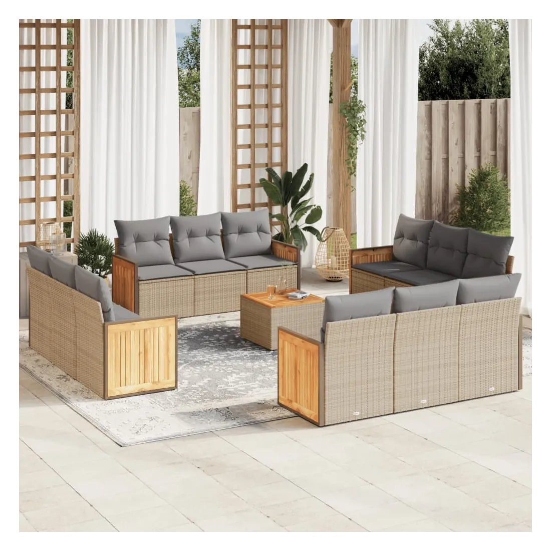Cet ensemble de canapés de jardin est le complément parfait de votre arrière-cour, terrasse ou patio, offrant un espace confortable et accueillant pour discuter avec la famille et les amis ou simplement se détendre et profiter de l'extérieur. Matériau durable : la résine tressée, également connue sous le nom de poly rotin, est un matériau synthétique solide et nécessitant peu d'entretien qui ressemble au rotin naturel. Il est léger, facile à nettoyer et couramment utilisé pour les meubles d'extérieur en raison de sa durabilité et de ses propriétés de résistance aux intempéries.Expérience d'assise confortable : ce mobilier d'extérieur, doté de coussins épais, offre une expérience d'assise confortable.Dessus stable et facile à nettoyer : cette table de jardin a un dessus en bois d'acacia robuste, durable et facile à nettoyer avec un chiffon humide.Housse amovible et lavable : ces coussins de siège sont dotés de housses amovibles pour un lavage et un entretien faciles.Conception modulaire : cet ensemble de meubles d'extérieur a une conception modulaire, ce qui le rend complètement flexible et facile à déplacer, afin que vous puissiez créer un agencement de meubles d'extérieur personnalisé. Bon à savoir :Pour que vos meubles d'extérieur restent beaux, nous vous recommandons de les protéger avec une housse imperméable.