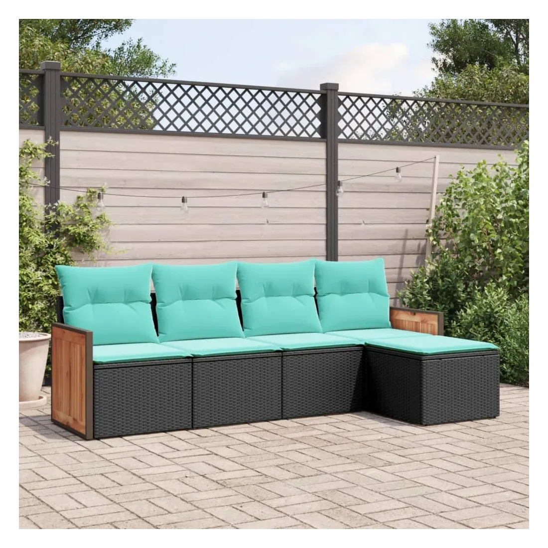 Cet ensemble de canapés de jardin est le complément parfait de votre arrière-cour, terrasse ou patio, offrant un espace confortable et accueillant pour discuter avec la famille et les amis ou simplement se détendre et profiter de l'extérieur. Matériau durable : la résine tressée, également connue sous le nom de poly rotin, est un matériau synthétique solide et nécessitant peu d'entretien qui ressemble au rotin naturel. Elle est légère, facile à nettoyer et couramment utilisée pour les meubles d'extérieur en raison de sa durabilité et de ses propriétés de résistance aux intempéries.Expérience d'assise confortable : ce mobilier d'extérieur, doté de coussins épais, offre une expérience d'assise confortable.Housse amovible et lavable : ces coussins de siège sont dotés de housses amovibles pour un lavage et un entretien faciles.Conception modulaire : cet ensemble de meubles d'extérieur a une conception modulaire, ce qui le rend complètement flexible et facile à déplacer, afin que vous puissiez créer un agencement de meubles d'extérieur personnalisé. Bon à savoir :Pour que vos meubles d'extérieur restent beaux, nous vous recommandons de les protéger avec une housse imperméable.