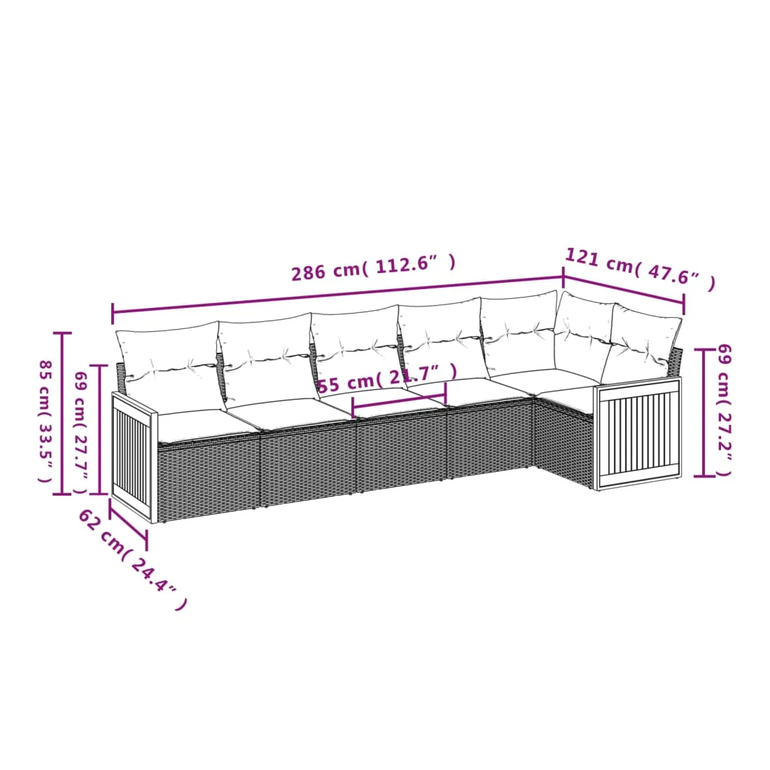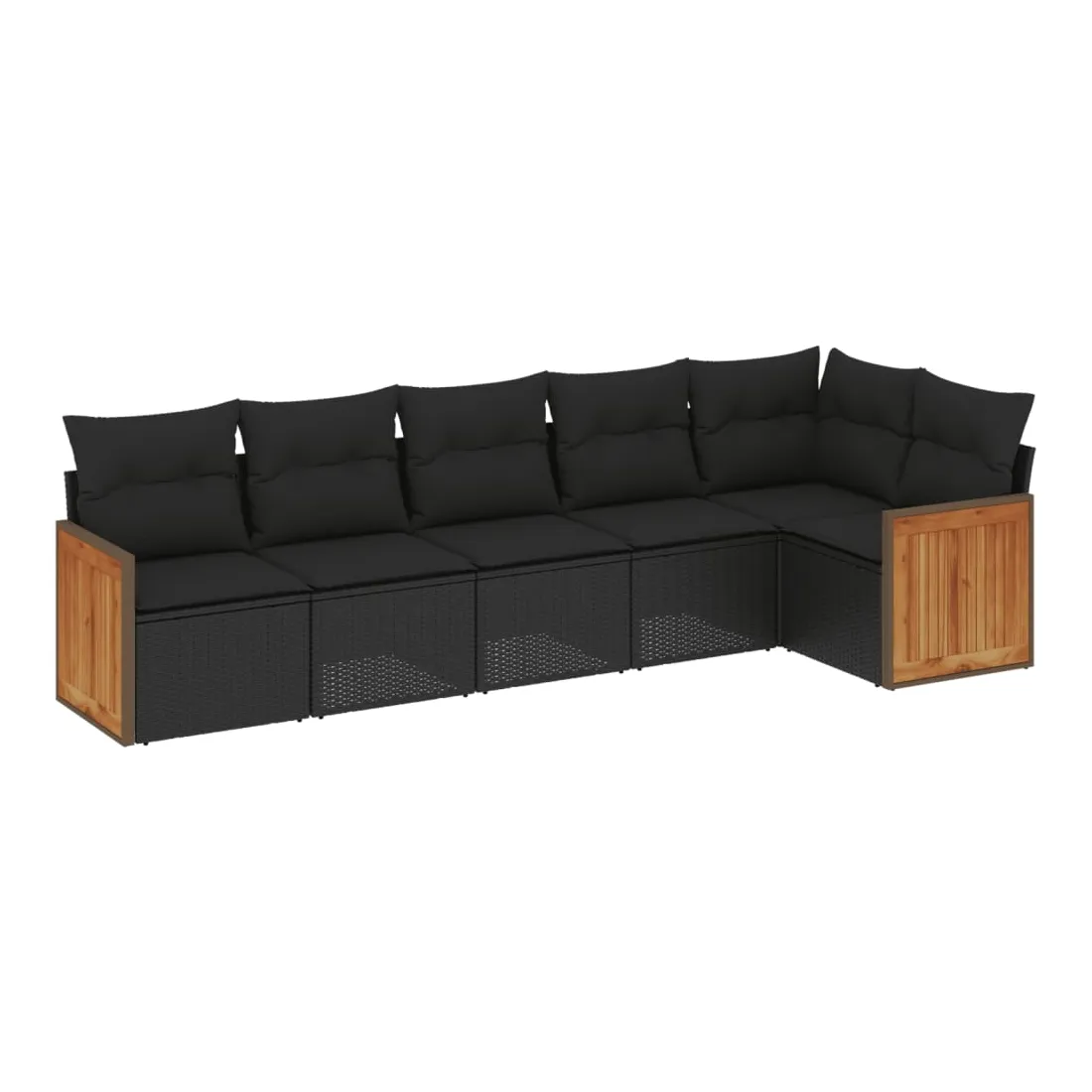 Salon de jardin 6 pcs avec coussins noir résine tressée